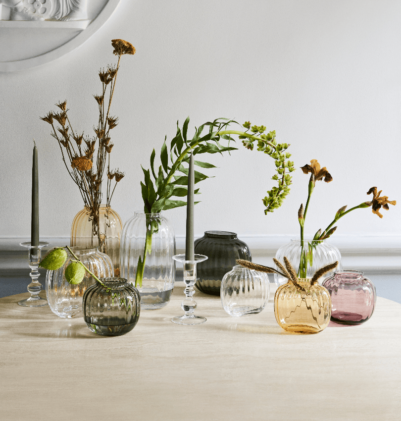 The brand produces glassware including vases, drinking glasses, bowls, and decorative glass objects designed for both everyday use and display.