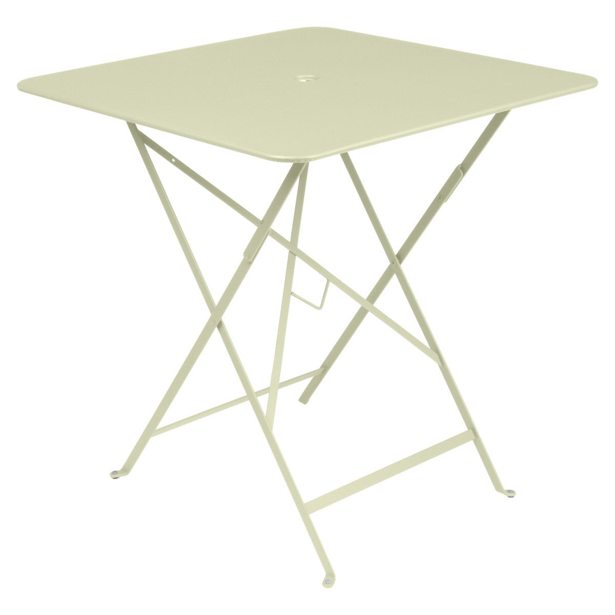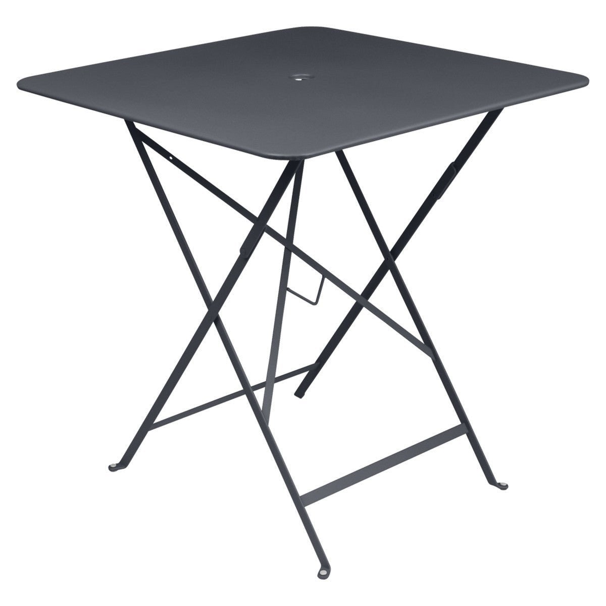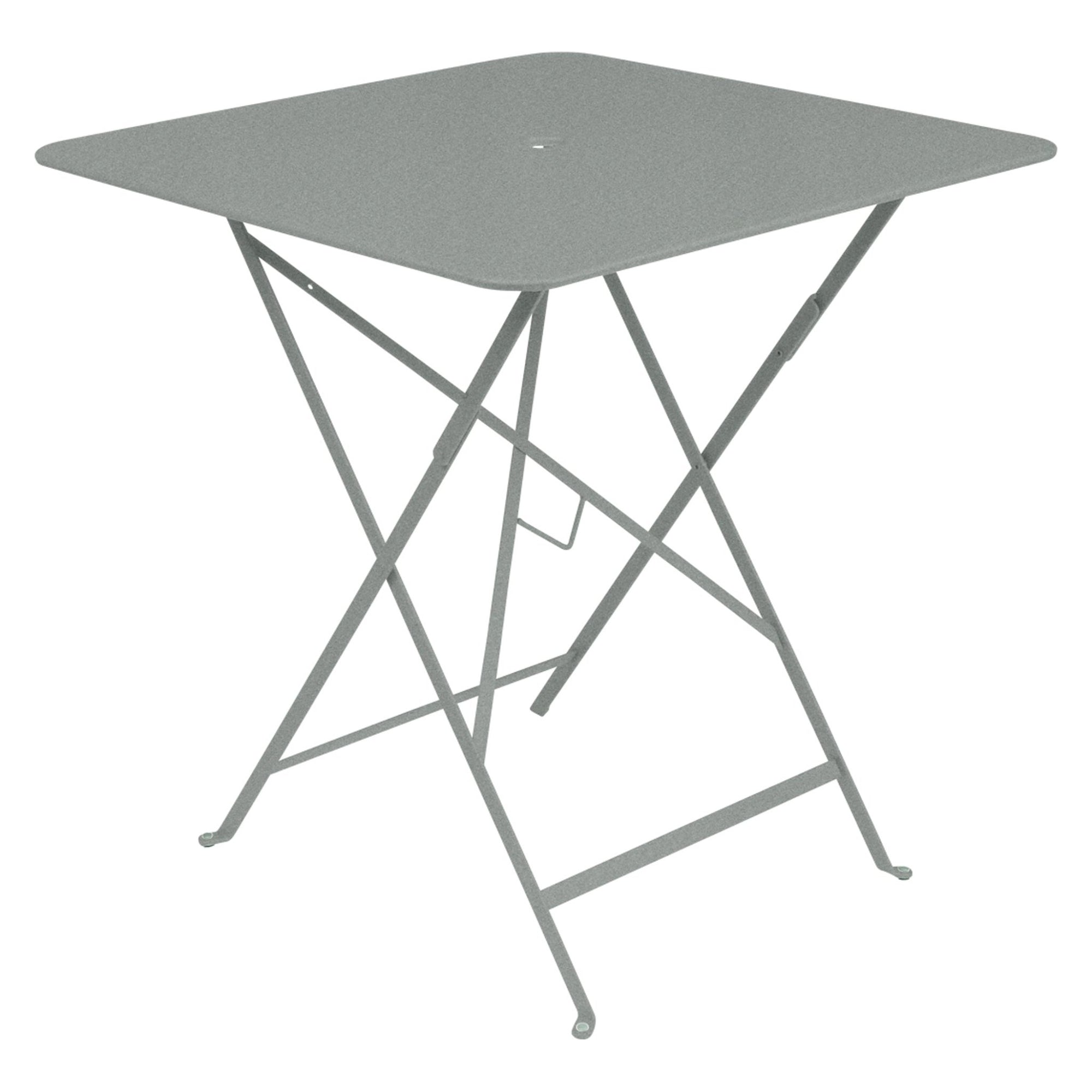 The Fermob Bistro Square Folding Table - 28" x 28" adds elegance to your outdoor space. Its 28" x 28" size is perfect for small gatherings. The table includes an umbrella hole for shade during sunny days. When not in use, it folds easily for storage. This fermob table fits perfectly on patios, balconies, or small gardens.