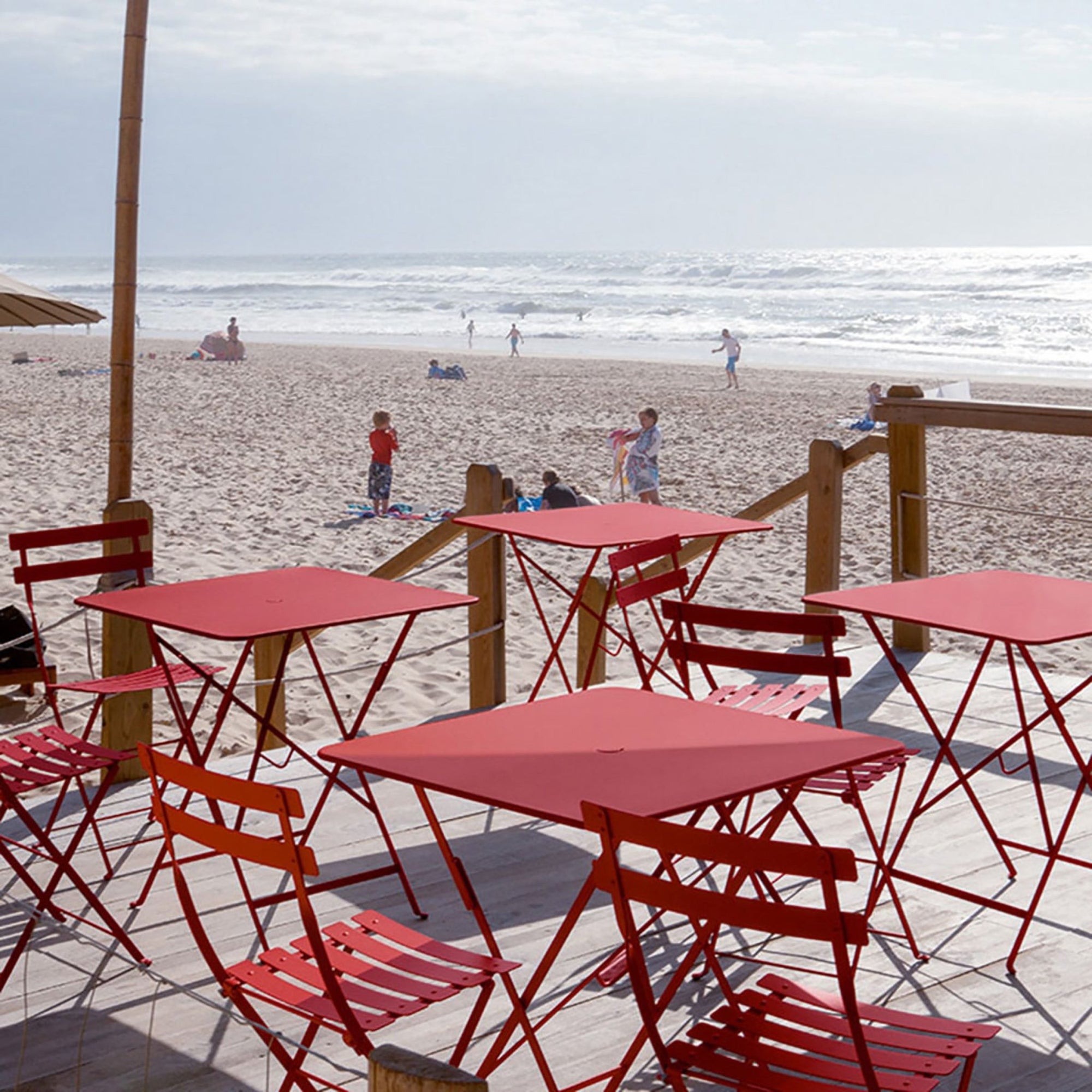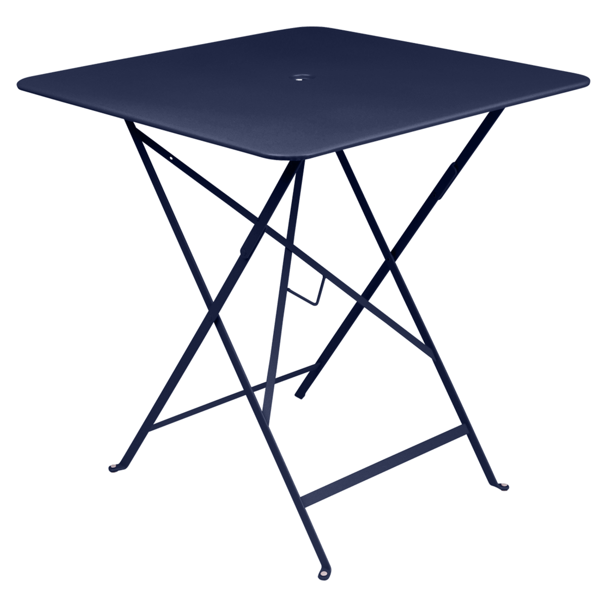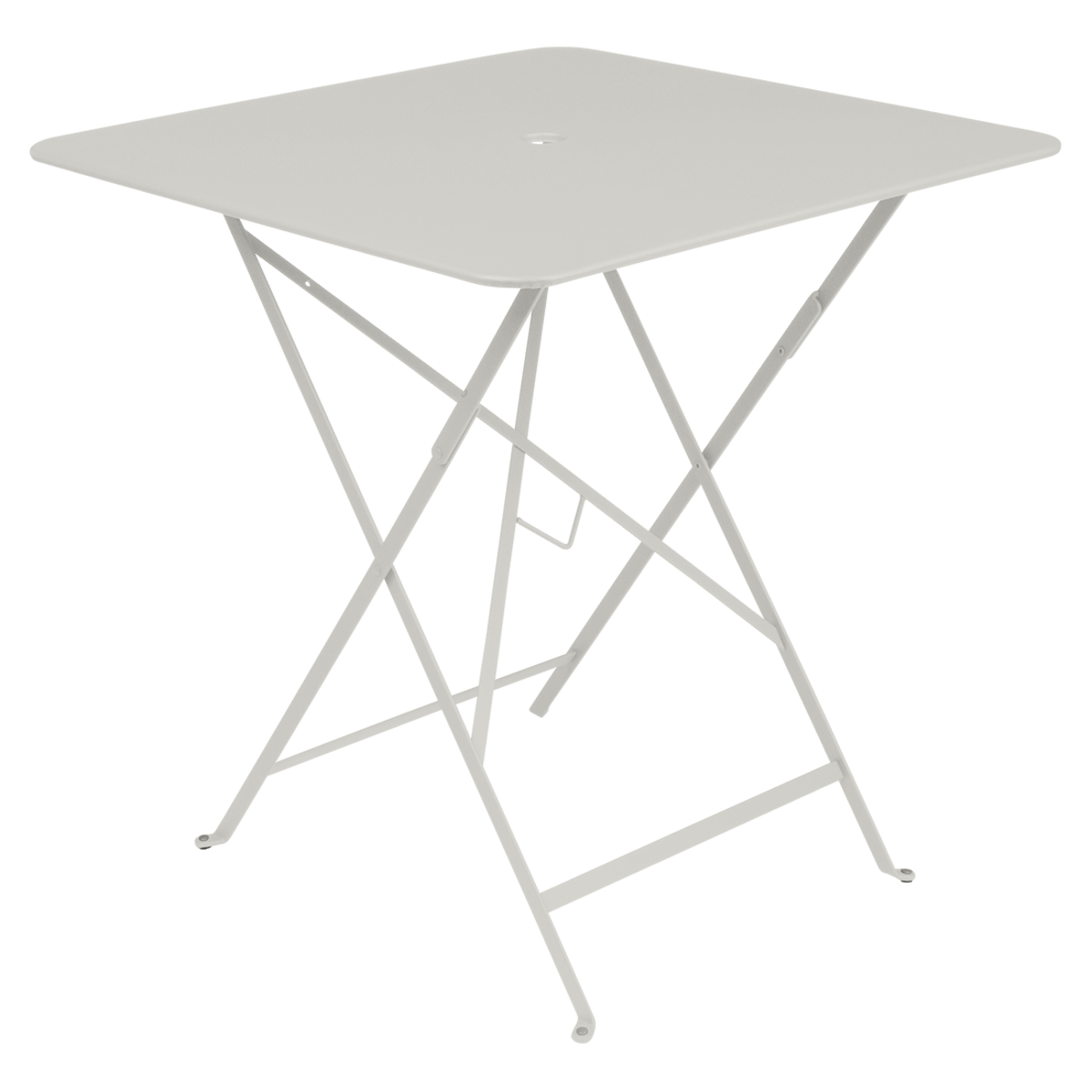 The Fermob Bistro Square Folding Table - 28" x 28" adds elegance to your outdoor space. Its 28" x 28" size is perfect for small gatherings. The table includes an umbrella hole for shade during sunny days. When not in use, it folds easily for storage. This fermob table fits perfectly on patios, balconies, or small gardens.