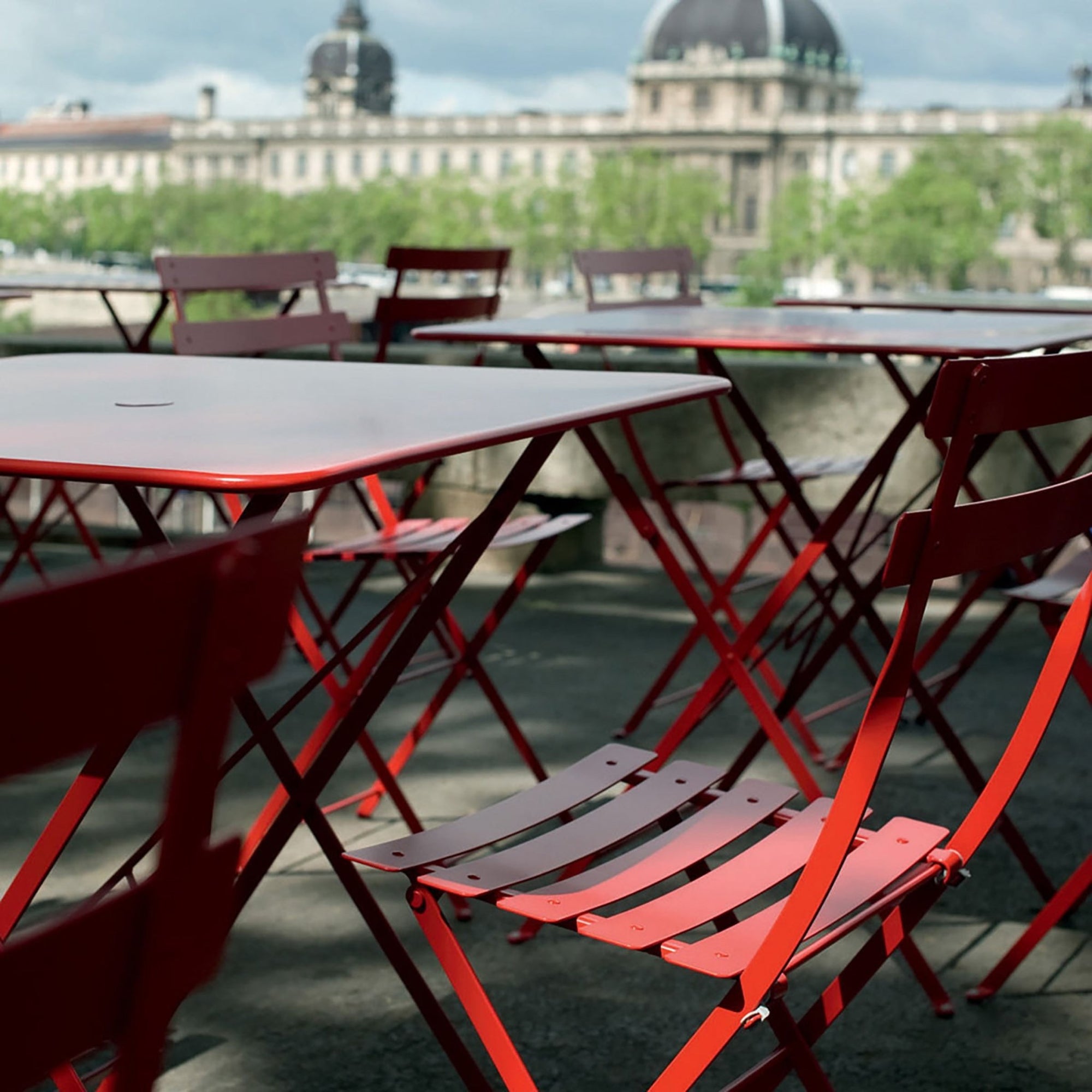 Made from powder-coated steel, the Fermob Bistro Square Folding Table is built to last. The table’s anti-UV coating prevents fading. Choose from a smooth satin or slightly textured finish. This fermob table withstands outdoor conditions while maintaining its vibrant color.