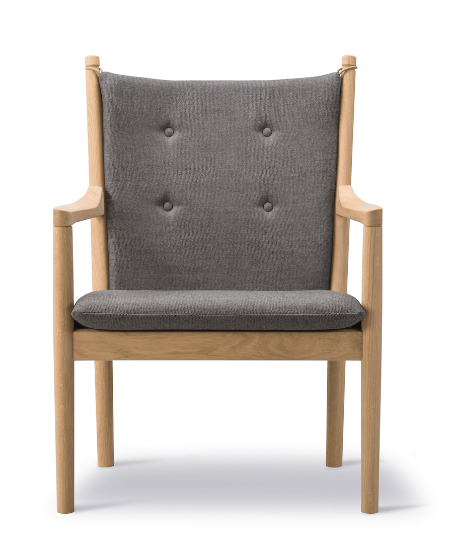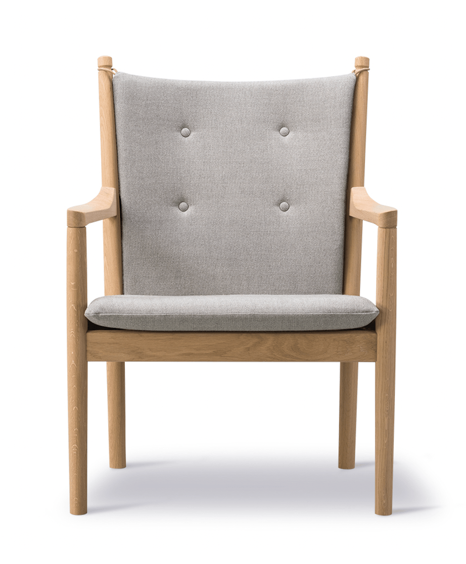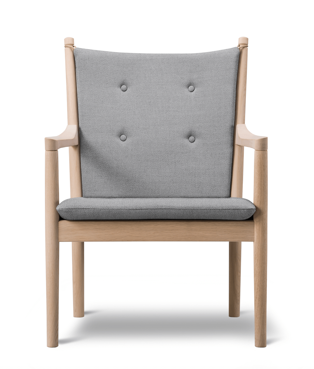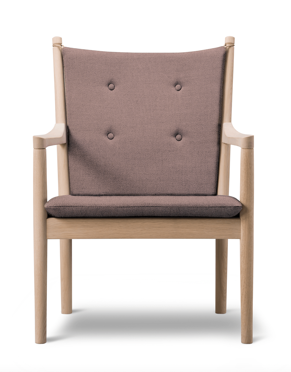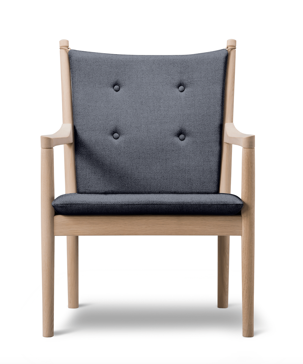 The 1788 Easy Chair - Soap Treated Oak features an elegant profile with soft-turned spokes, once considered “too sophisticated” when first introduced in 1945. Over time, it has become a celebrated design, known for its architectural style and natural wood finishes. Available in soap-treated oak, this chair exudes understated beauty, making it the perfect addition to any modern living space. When paired with various fabric or leather upholsteries, the Easy Chair offers both comfort and timeless elegance.