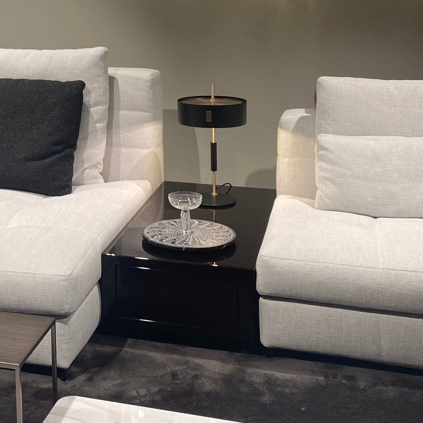 The Oluce 1953 Table Lamp design is a timeless reissue of a classic piece from the 1950s, created by renowned designers Ostuni and Forti. With two models—floor and table—this lamp features a striking asymmetrical design that shifts the lampshade from the center to the side. It also highlights a traditional cylindrical shade, with a satin gold interior beautifully contrasting against the matte black exterior. This combination of elegance and modernity makes the lamp a perfect example of mid-century design that still feels contemporary today.