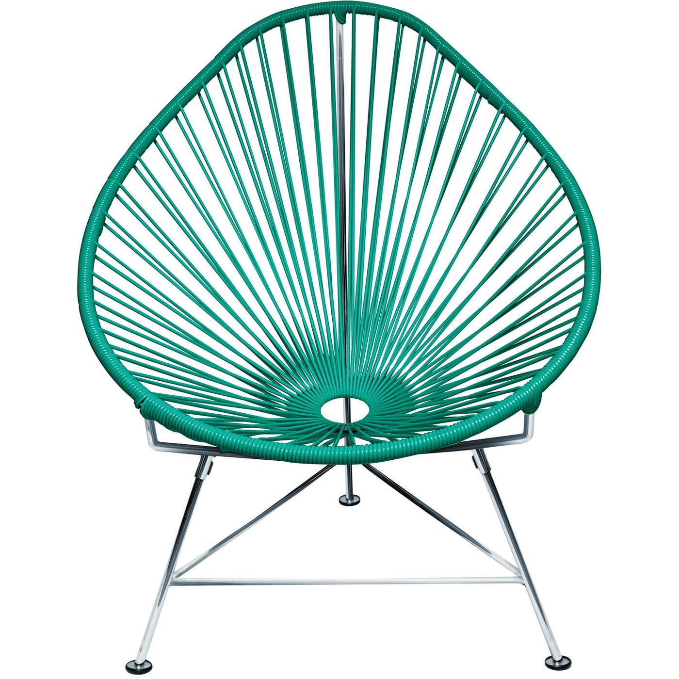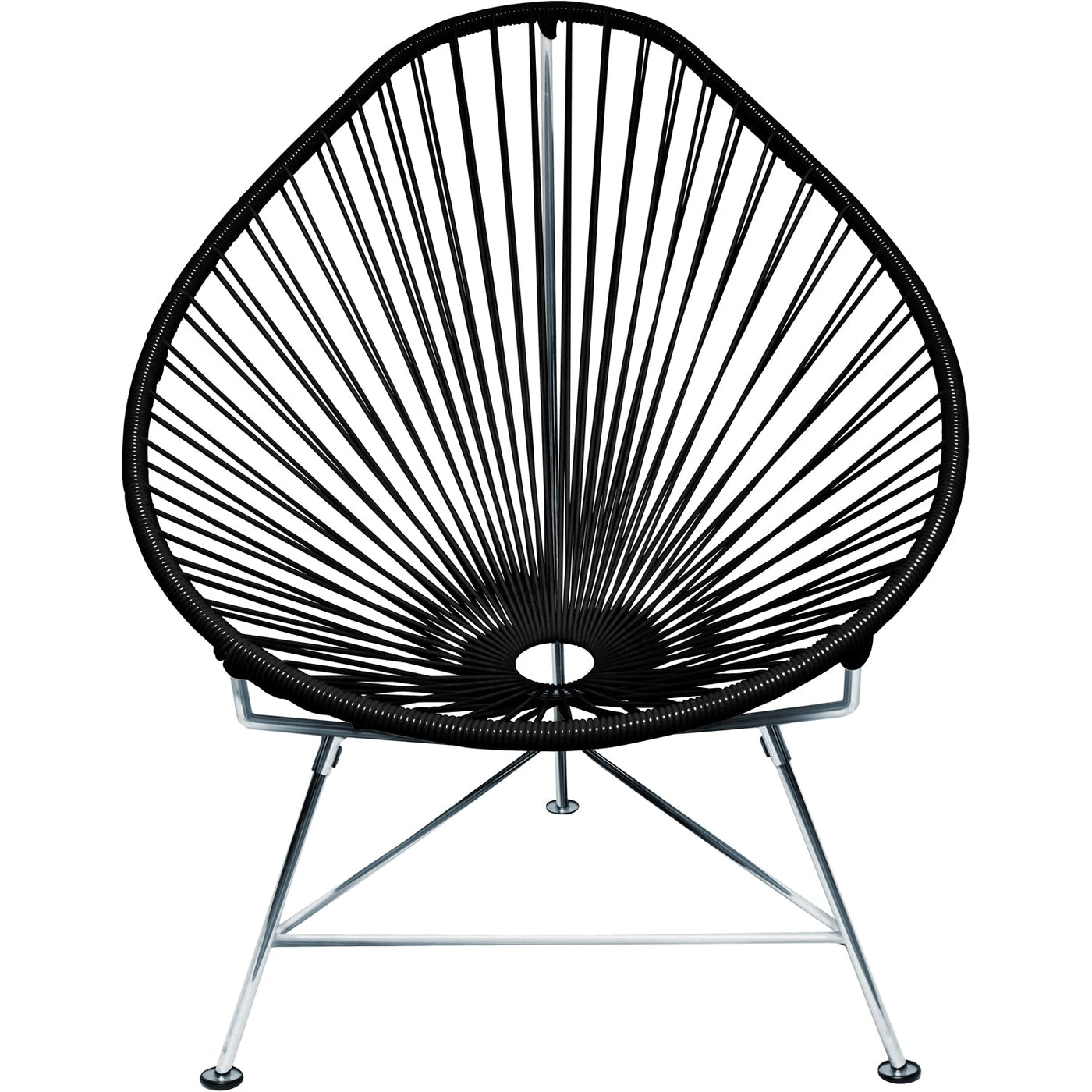 The Innit Designs Acapulco Chair - Chrome Frame - Set of 2 offers a perfect blend of style and comfort. With its unique pear-shaped profile, this chair is designed for relaxation and features a durable powder-coated steel frame along with UV-resistant, colorfast woven vinyl cord. Not only is this chair ideal for both residential and commercial use, but it is also weatherproof and breathable. Furthermore, its easy-to-clean surface and stackable design make it a practical and versatile choice for patios, balconies, and other outdoor spaces.