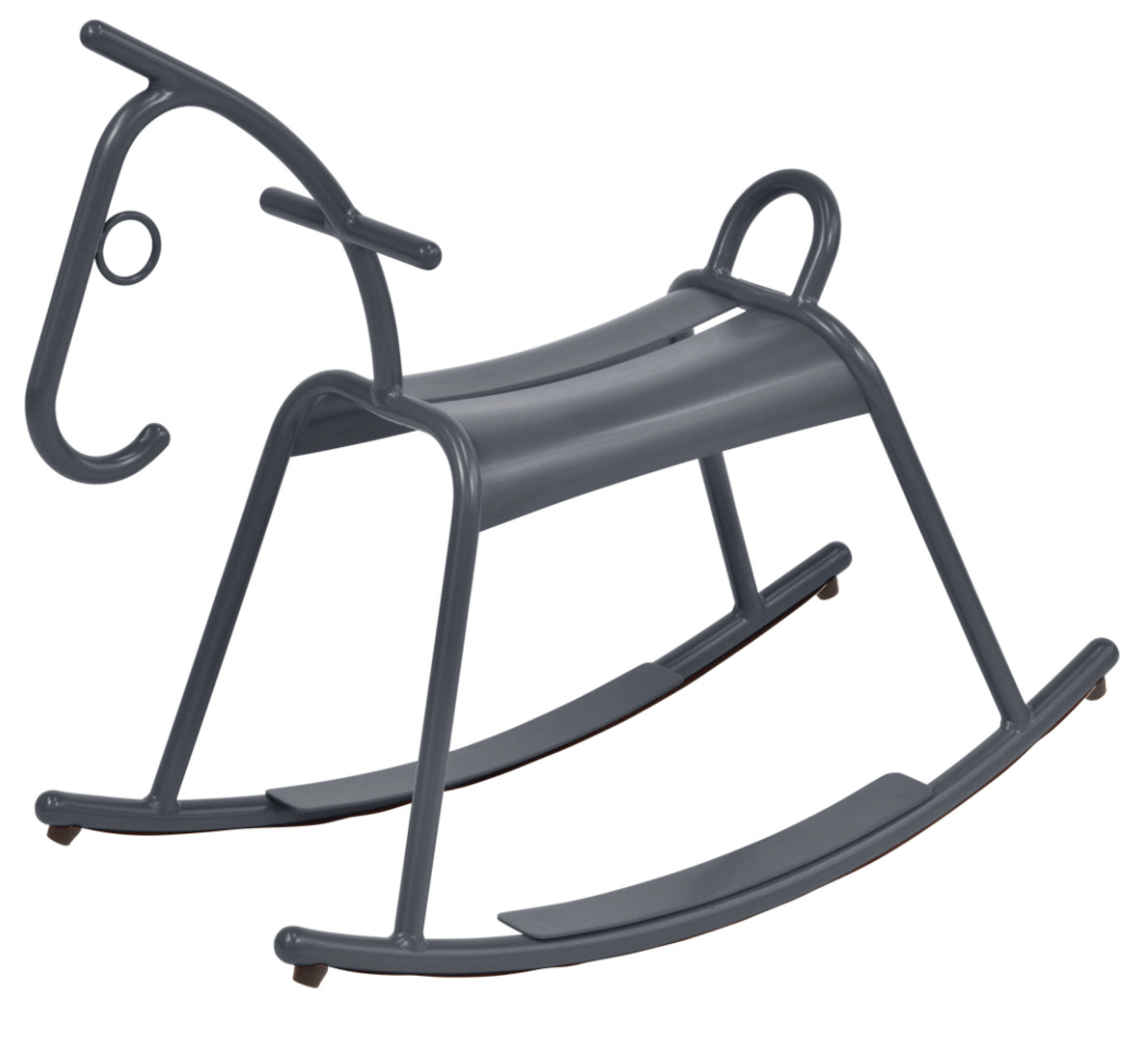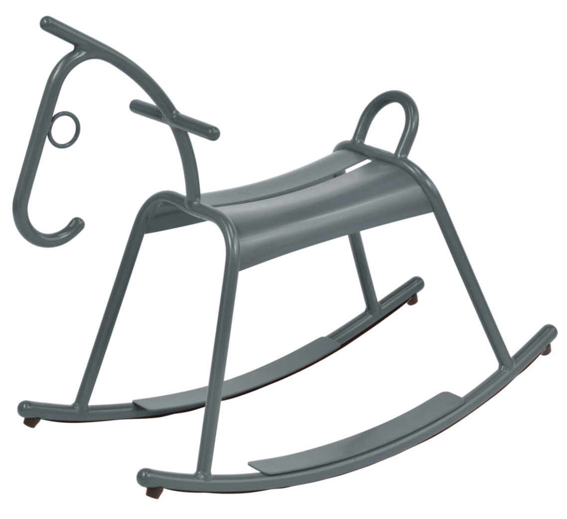 The newest member of Fermob's kids collection, the colorful Adada rocking horse is sure to provide children with hours of fun. Made with an aluminum frame and plastic pads, this children's rocking horse will make a special addition to the kids playroom or backyard.
