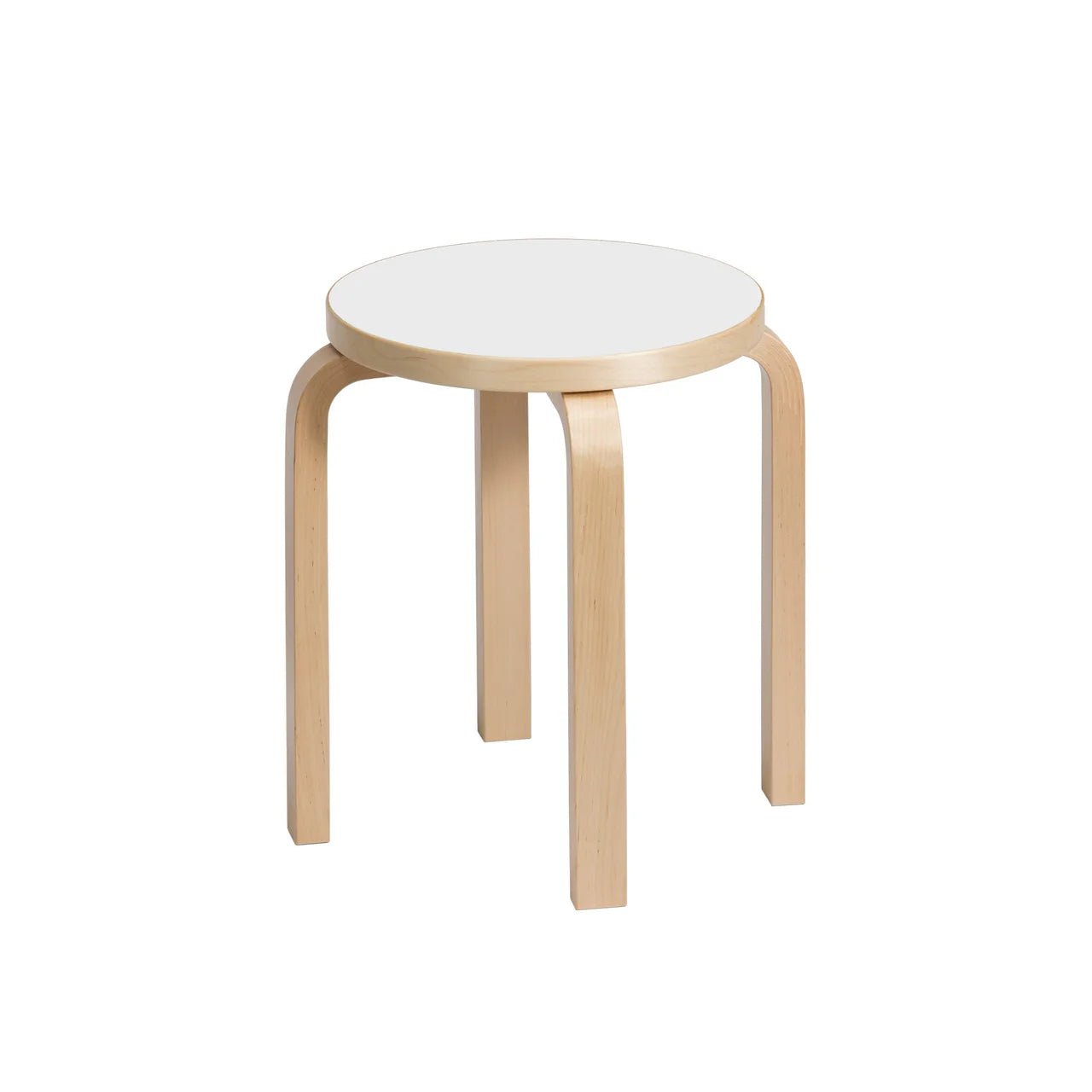 The Artek Alvar Aalto Stool E60 – Natural showcases Alvar Aalto's signature functionalist design. Crafted from durable natural materials, this stool features three bent legs and a simple round seat. Its stackable design makes it a practical yet timeless piece that suits both modern and traditional interiors. The natural wood finish adds warmth, making it a versatile addition to any living space or workspace.