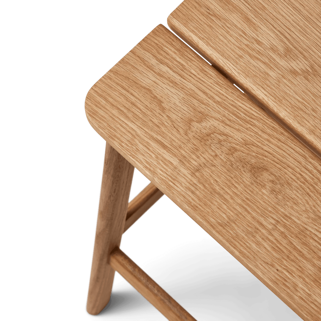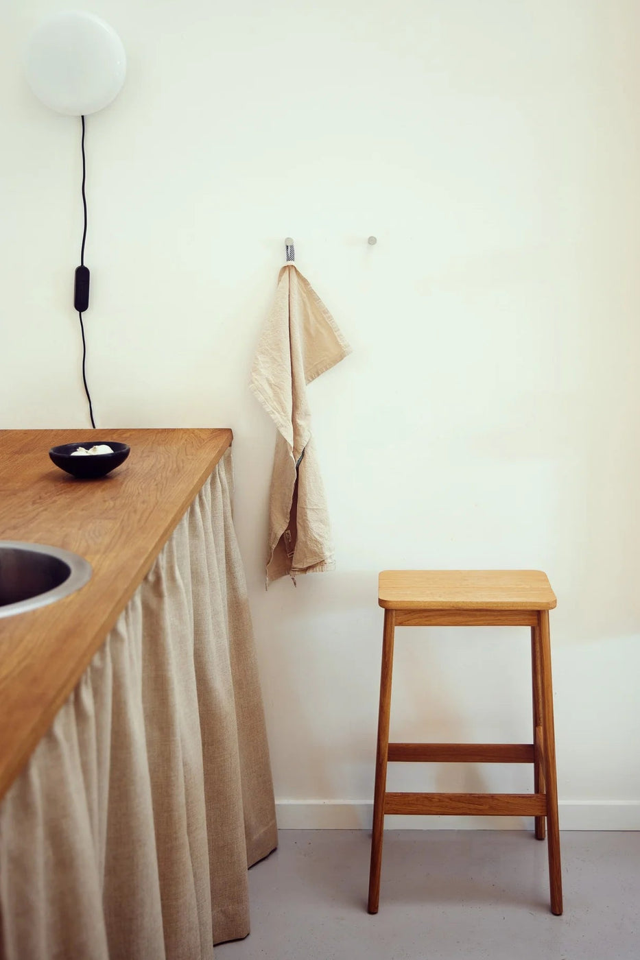 The construction quality becomes evident through daily use, with the premium oak materials maintaining their beautiful appearance through regular sitting, kitchen activities, and the natural interaction that comes with counter-height seating. The carefully considered proportions work beautifully for different users - the 65cm seat height is perfect for standard counter surfaces while the supportive design encourages comfortable positioning during extended meals or conversations. The substantial oak construction ensures long-term durability while the refined details reflect authentic Danish craftsmanship. The stool encourages relaxed dining rather than rigid perching, offering reliable comfort for everything from morning coffee to lengthy dinner parties while maintaining its sculptural beauty through constant use and seasonal entertaining.