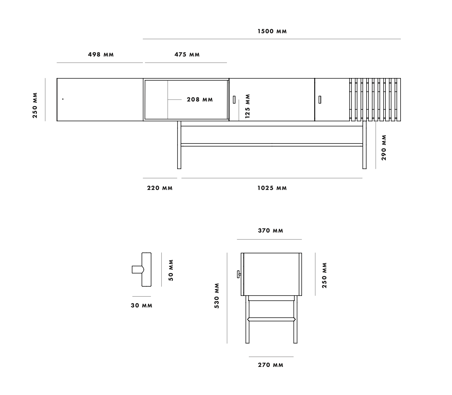 - Cabinet: Black painted oak veneer / White pigmented lacqured oak veneer