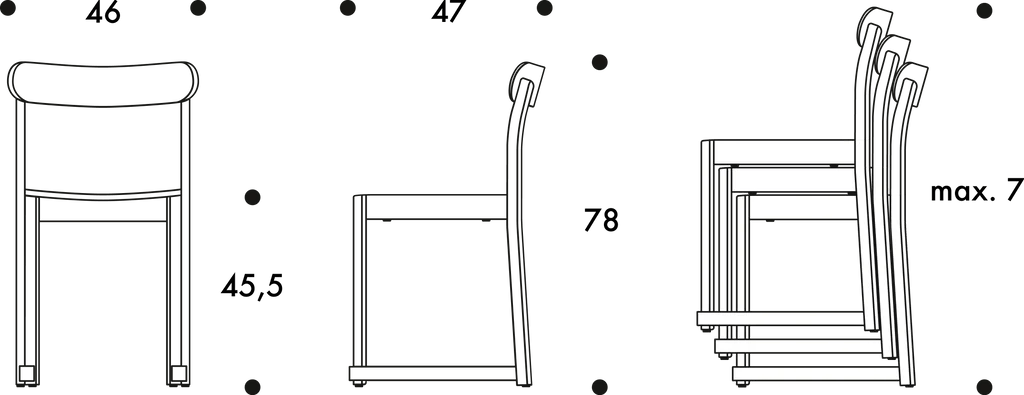 - Seat surfaces: beech veneer, ash veneer, oak veneer
