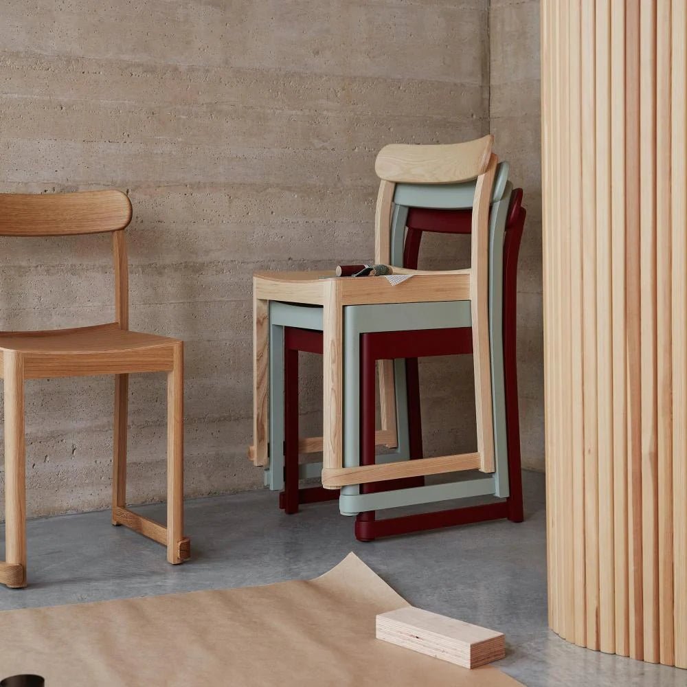 The Artek Atelier Chair blends classic craftsmanship with modern versatility. Originally designed by TAF Studio in 2018 for the Nationalmuseum restaurant in Stockholm, the Atelier Chair evokes the spirit of an artist’s studio. Compact, lightweight, and effortlessly stackable, the chair’s clean lines and balanced proportions make it a natural fit for a wide range of settings.