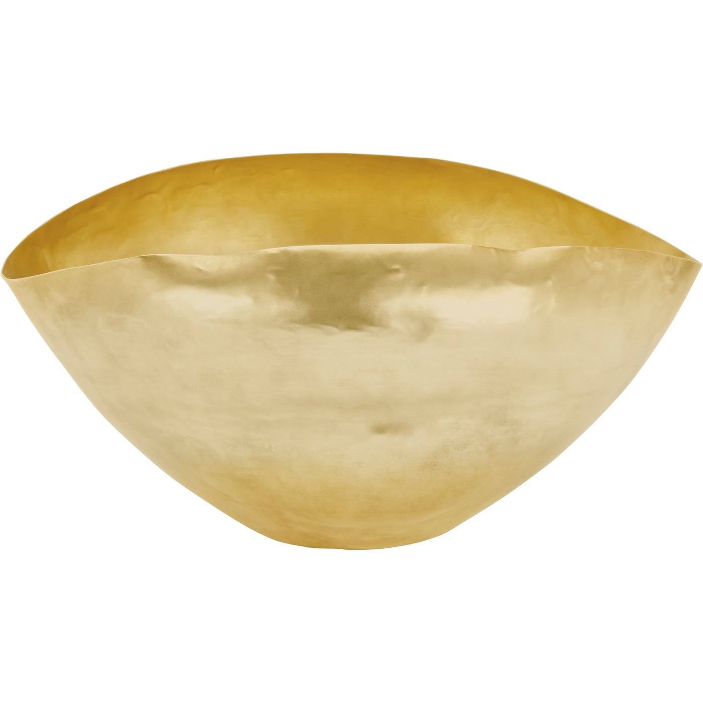 Bash Vessel is formed of brass and shaped by hand into an expressive crumpled form. It can be used as an extravagant flower vase, fruit bowl or as a contemporary sculpture. Each piece is unique in shape and finished with a gold wash. Available in large and small. This product is not lacquered and the warm gold finish will slowly develop a unique patina as it oxidizes.