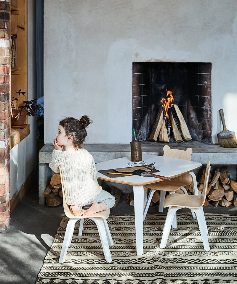 The Oeuf Bear Play Chair (Set of 2) brings an adorable and functional touch to any child's space. These bent plywood chairs, designed with cute bear ears, are not only charming but also practical. Perfectly sized for young children, they fit seamlessly with the Oeuf play table, creating a fun and interactive environment. Whether your child is creating, snacking, or reading, these chairs provide a comfortable and whimsical seating option that is sure to enhance playtime.