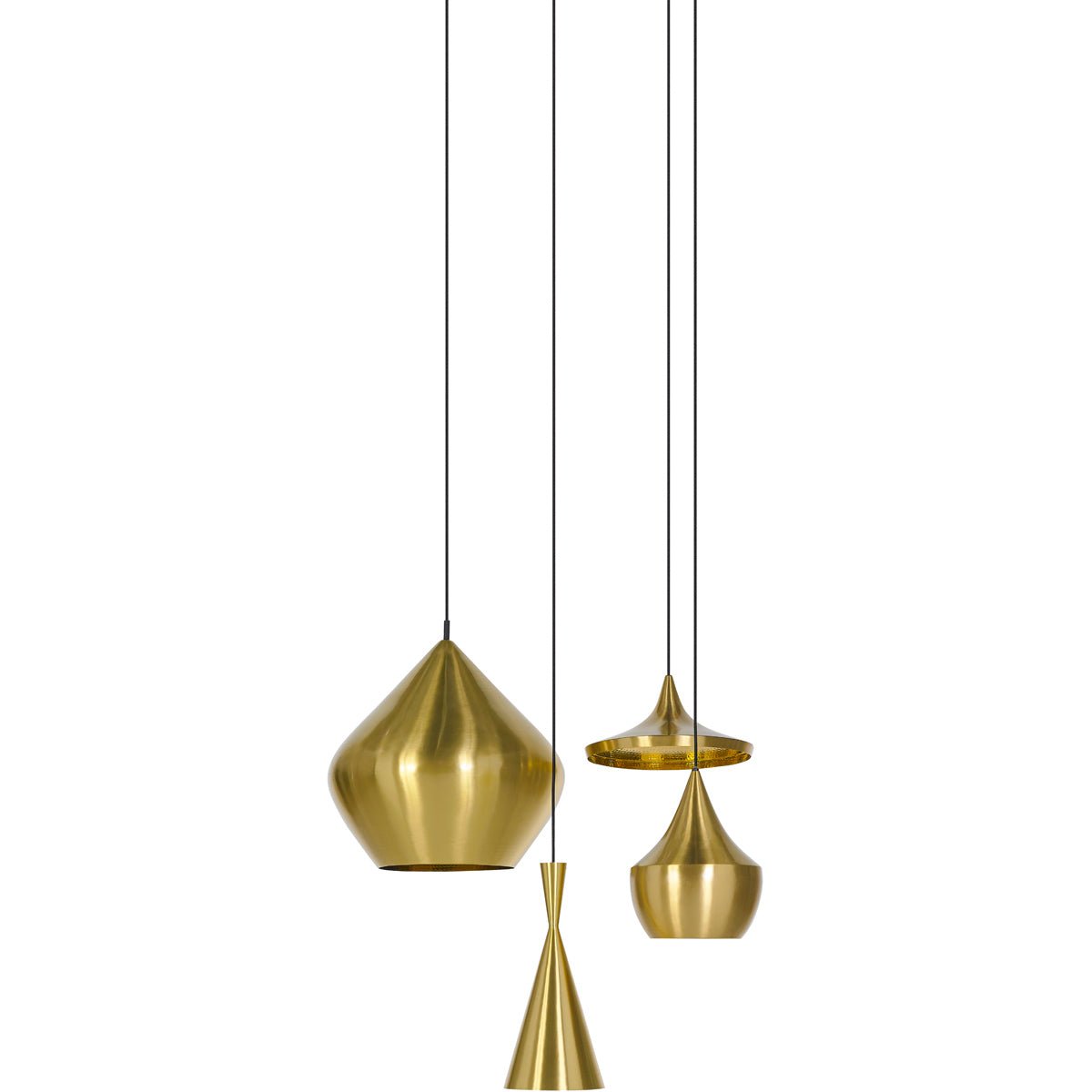 Pulling inspiration from traditional cooking pots and water vessels, Tom Dixon works with skilled artisans in India to create these beautiful fixtures. Brass is first spun and then hand-beaten on the interior in Moradabad, India. The inside is left in its natural color and the exterior is given a brushed finish.