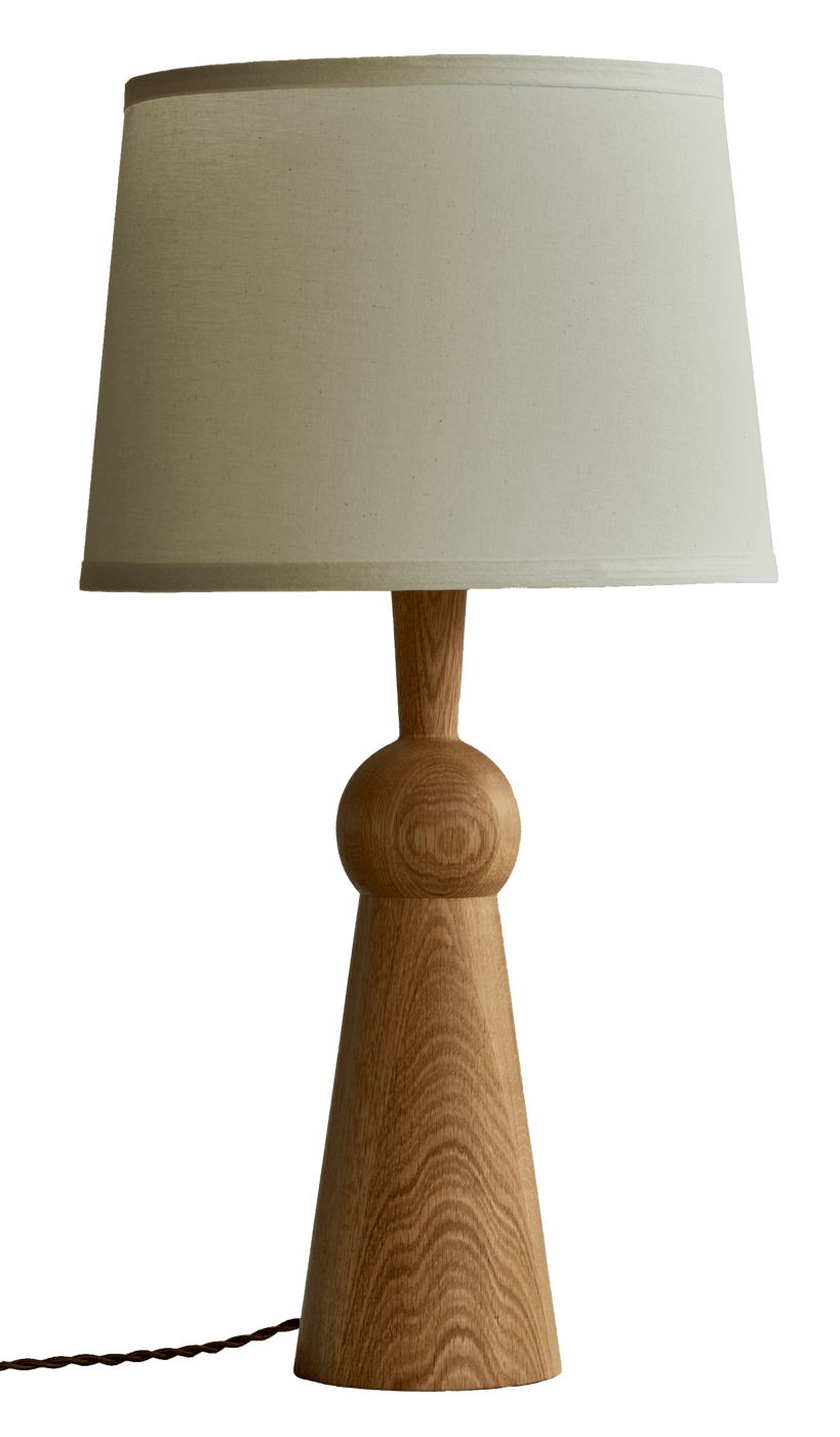 The Lostine Bella Skirt Lamp blends handmade character with refined design. Crafted in Pennsylvania, it features a hand-turned red oak base and a tapered Belgian linen shade. You can choose from natural, dark wash, or whitewash finishes to suit your space. Whether it’s placed on a credenza, nightstand, or round coffee table, the Bella Skirt Lamp adds a layer of warmth and understated style to your room.