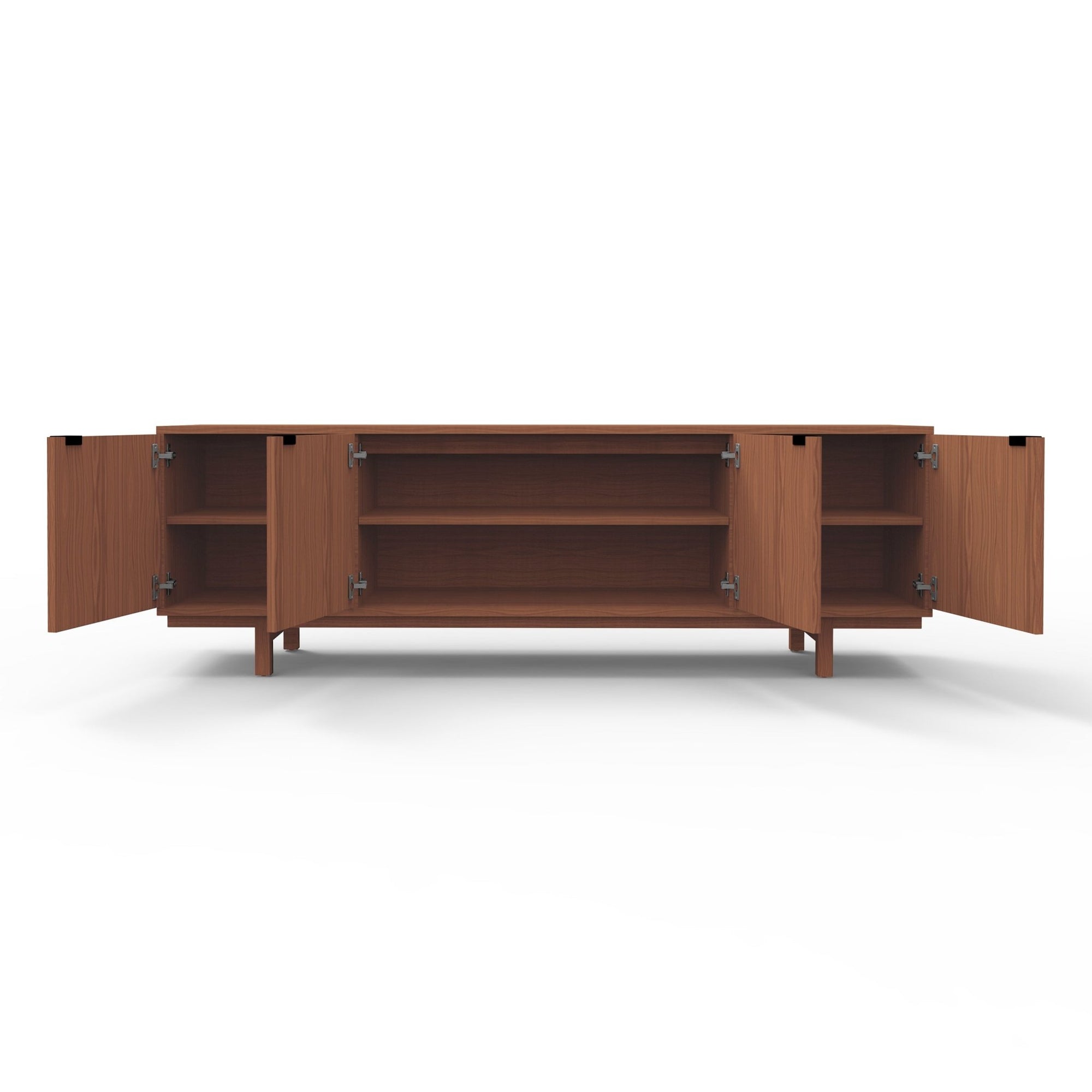 The Belmont collection exudes grace and distinguished personality while showcasing the honest beauty and organic movement of natural walnut. An answer to the need for large furniture that doesn’t impose but serves multiple purposes, the Belmont Credenza offers four small and two bigger hidden storage shelves under a smooth tabletop. Essentials and extras can be safely stored or displayed as needed in entryways, bedrooms, living areas, dining rooms, and offices. Pair the Belmont Credenza with the Belmont Cabinet and Media Stand for a complete living room set.