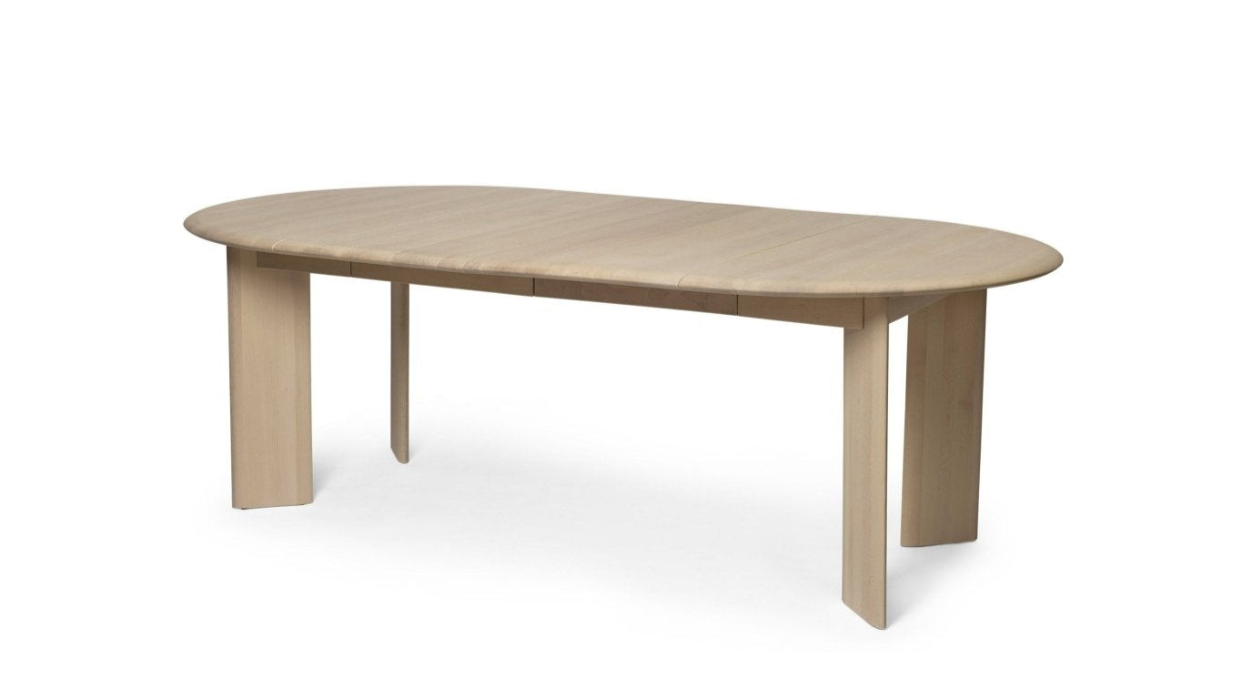 The Ferm Living Bevel Table Extendable combines classic design with modern style. Made from solid oak, it features broad, sculpted legs and gently rounded edges for a soft look. Plus, the extension leaf lets you easily add extra space. Whether for casual dinners or special occasions, this table fits perfectly in homes with Scandinavian furniture and modern chandeliers.