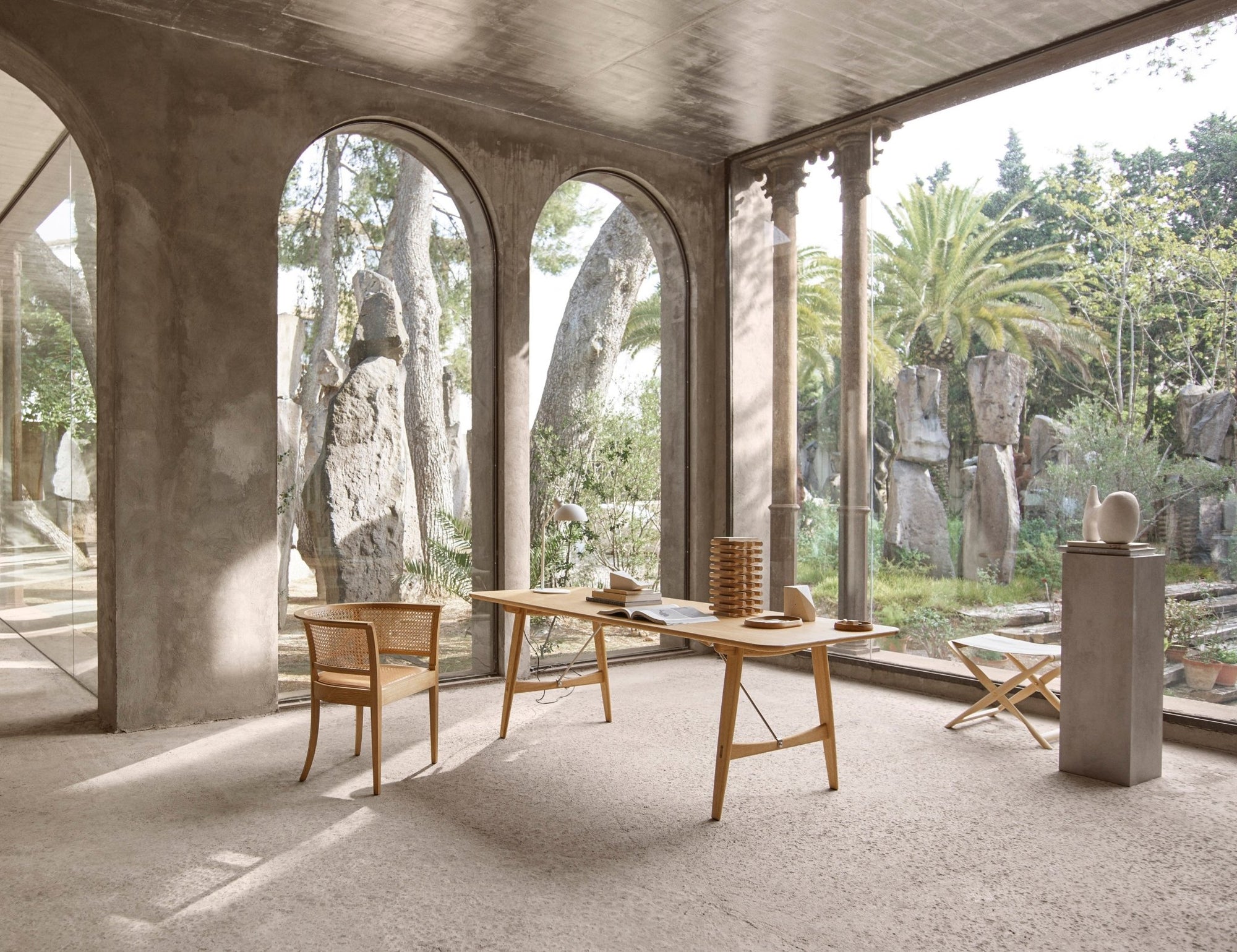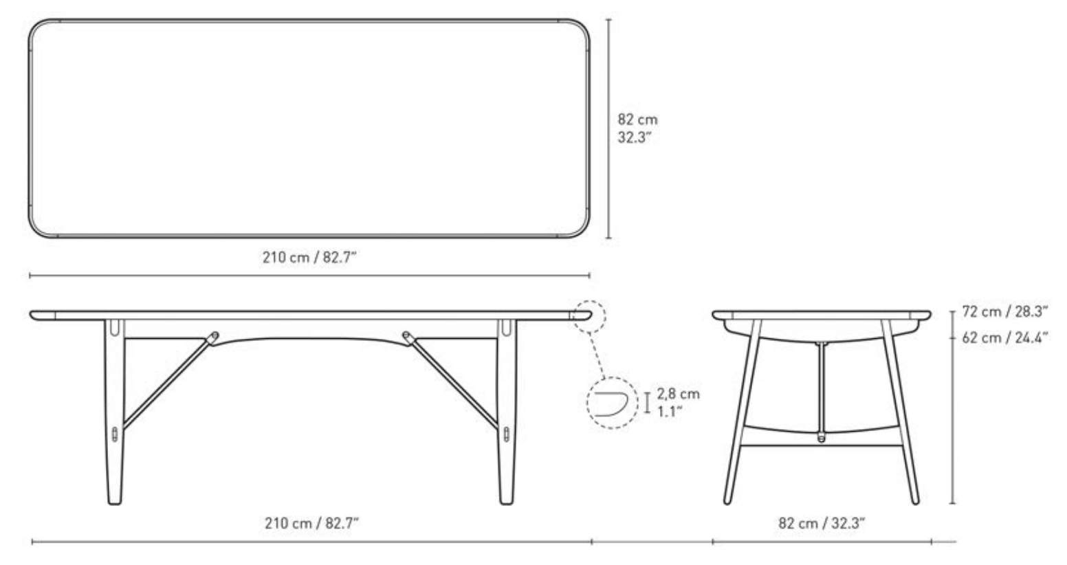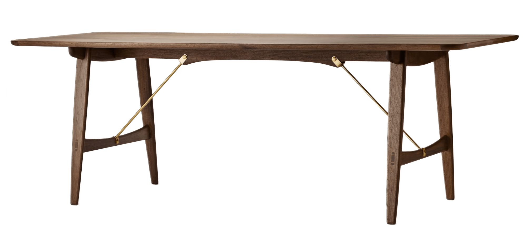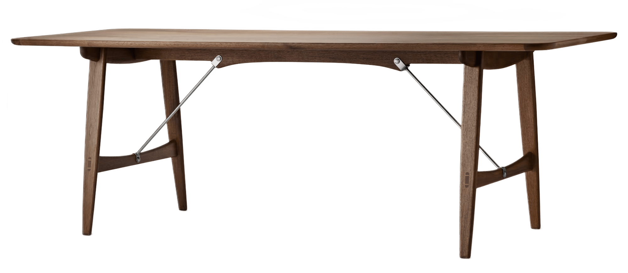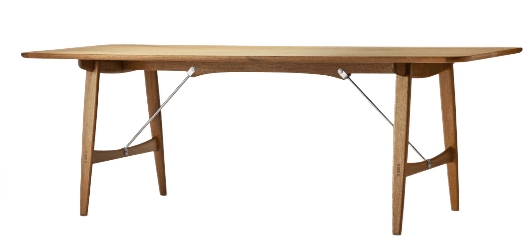 Originally built in 1950 for the Copenhagen Cabinetmakers’ Guild Furniture Exhibition, the BM1160 Hunting Table embraces and blends bold design techniques with natural aesthetics through the use of solid oak and natural finishes, metal braces, mortise and tenon joints, and sleek, rounded edges. Elegant yet rugged, the Hunting Table is slim enough to suit more compact spaces and seats six to eight for dinner.
