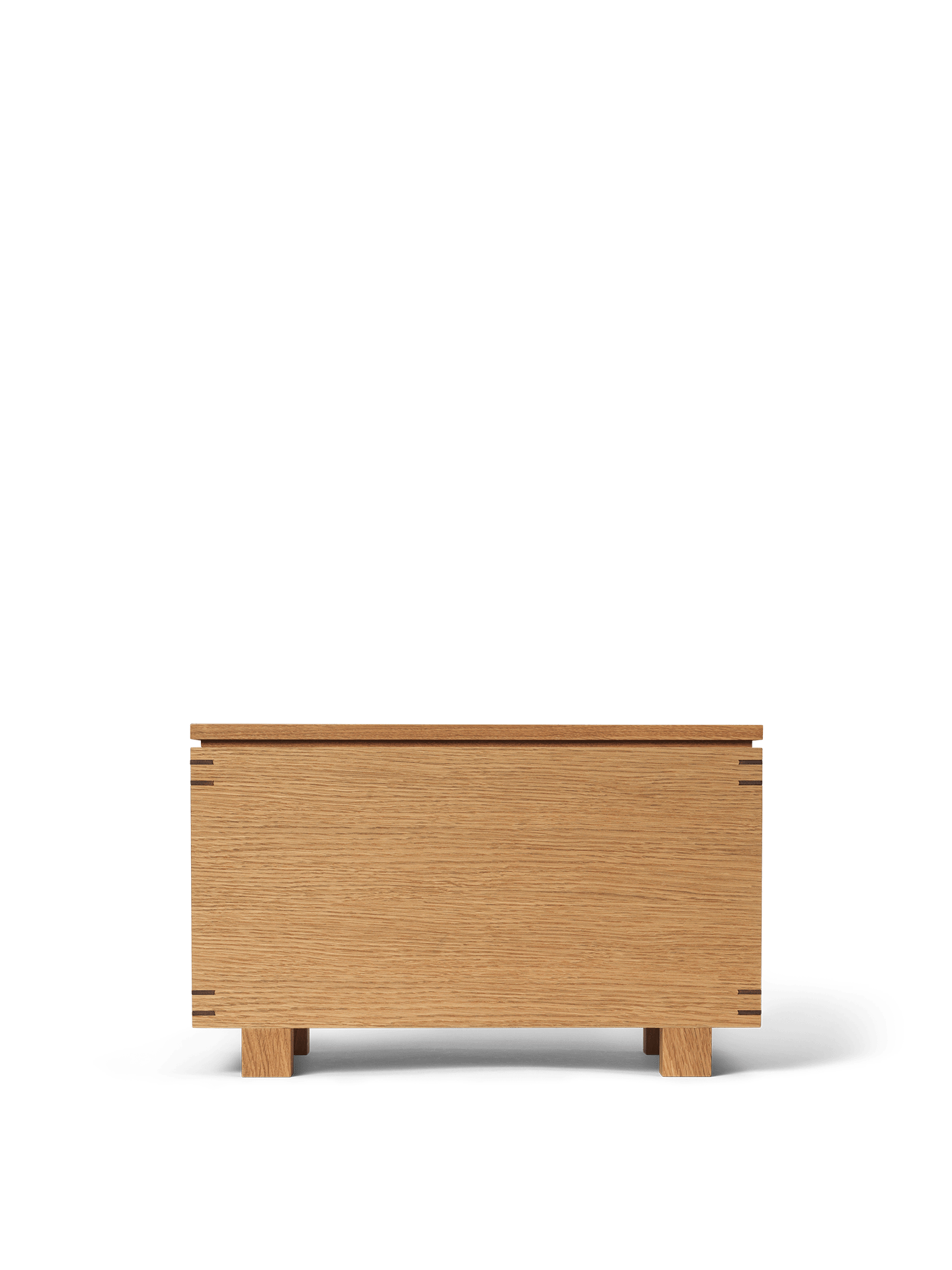 Material: Lid, sides and feet: Natural solid oak. Bottom: Natural oak veneer with MDF core. FSC™ Mix certified wood
