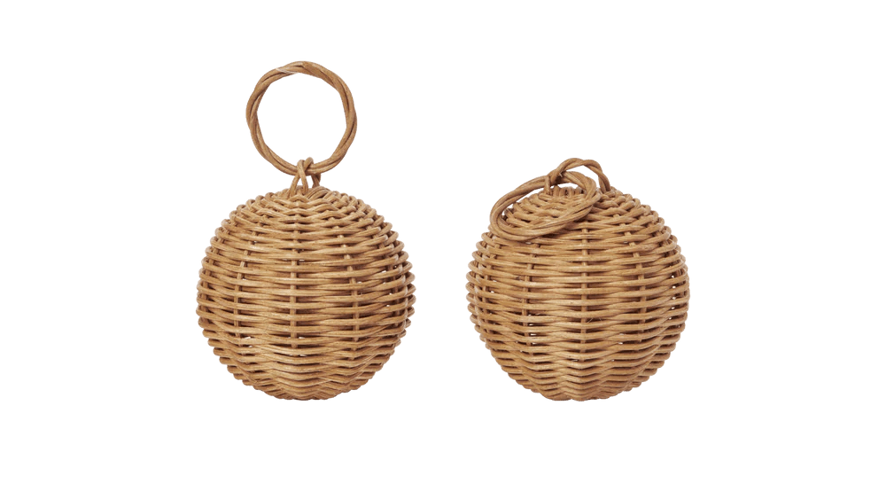 The Ferm Living Braided Baubles blend timeless holiday tradition with modern Scandinavian sensibility through their handcrafted rattan construction that transforms the classic Christmas ornament into something both familiar and refreshingly contemporary. This isn't just another set of baubles - the Braided represents the perfect balance between festive celebration and sophisticated design, where traditional braiding techniques meet refined aesthetics to create ornaments that feel both nostalgic and current. The natural rattan construction adds warm, earthy tones that complement any décor style, while the spherical shapes honor the classic bauble silhouette with organic texture and artisanal charm. Whether you're decorating a traditional Christmas tree with thoughtful, handmade touches, creating modern holiday garlands that blend natural materials with contemporary styling, designing seasonal displays that work from November through New Year, or wanting ornaments that transition beautifully between festive decoration and year-round sculptural objects, the Braided Baubles deliver both holiday magic and lasting design appeal that makes every season feel special. This set of two ornaments demonstrates the thoughtful craftsmanship that makes handwoven rattan genuinely beautiful while providing the practical features needed for versatile holiday decorating. The lightweight construction makes them easy to hang without weighing down delicate branches, while the practical hanging loops ensure secure placement whether you're adorning trees, creating garlands, or styling seasonal vignettes. Each bauble is handcrafted from 100% natural rattan, ensuring slight variations in color and texture that make every piece unique and add to their authentic, artisanal character. The timeless spherical shape works beautifully alone or clustered together, allowing for flexible styling options that adapt to different decorating approaches and color schemes. The honey-colored natural rattan adds warmth and organic texture that pairs beautifully with both traditional holiday colors and modern neutral palettes. Ferm Living, based in Copenhagen, designs with balance, simplicity, and soul through their commitment to creating holiday decorations that celebrate the season while honoring sustainable materials and traditional craftsmanship techniques. The Braided Baubles reflect the brand's passion for pieces that bring authentic beauty to festive celebrations without sacrificing environmental consciousness or design integrity. Not only do they create exceptional individual ornaments that work beautifully alone, but they also offer complete holiday collections including bells, cones, and other decorative elements all designed to work harmoniously together. Through handcrafted rattan construction, natural materials that age beautifully, and that distinctly Danish approach to balancing festive joy with sophisticated restraint, Ferm Living helps you build holiday traditions that feel personal, warm, and deeply considered while bringing the honest beauty of natural materials and traditional craftsmanship into the magical moments of seasonal celebration.