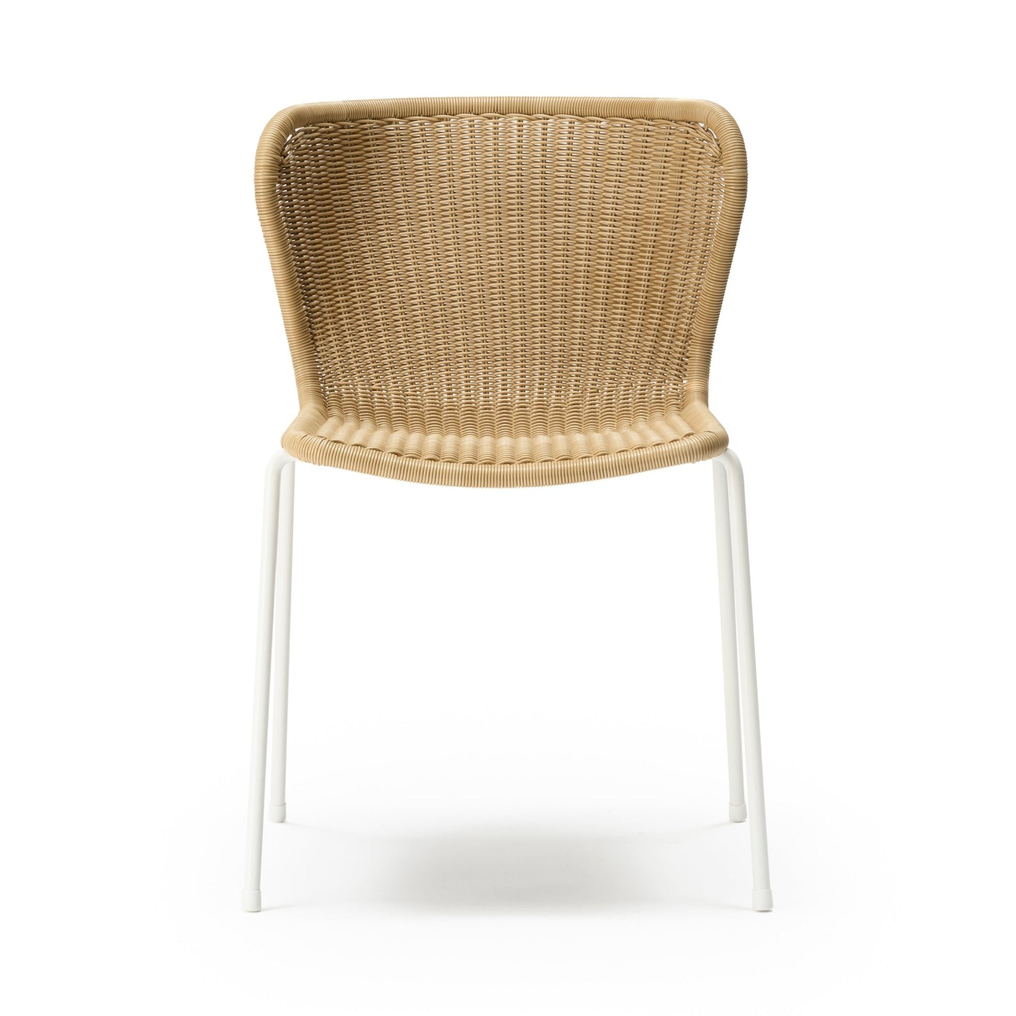 The C603 chair by Yuzuru Yamakawa was designed in 1958 and is a classic stacking chair still in tune with today's design and comfort requirements. Stackable up to 4 chairs, it is suitable for residential and hospitality use. With powder-coated steel legs and a polyethylene wicker weave, the chair is suitable full outdoor use at a bar, restaurant, brasserie, or café – or at your private residence on the patio or by the pool.
