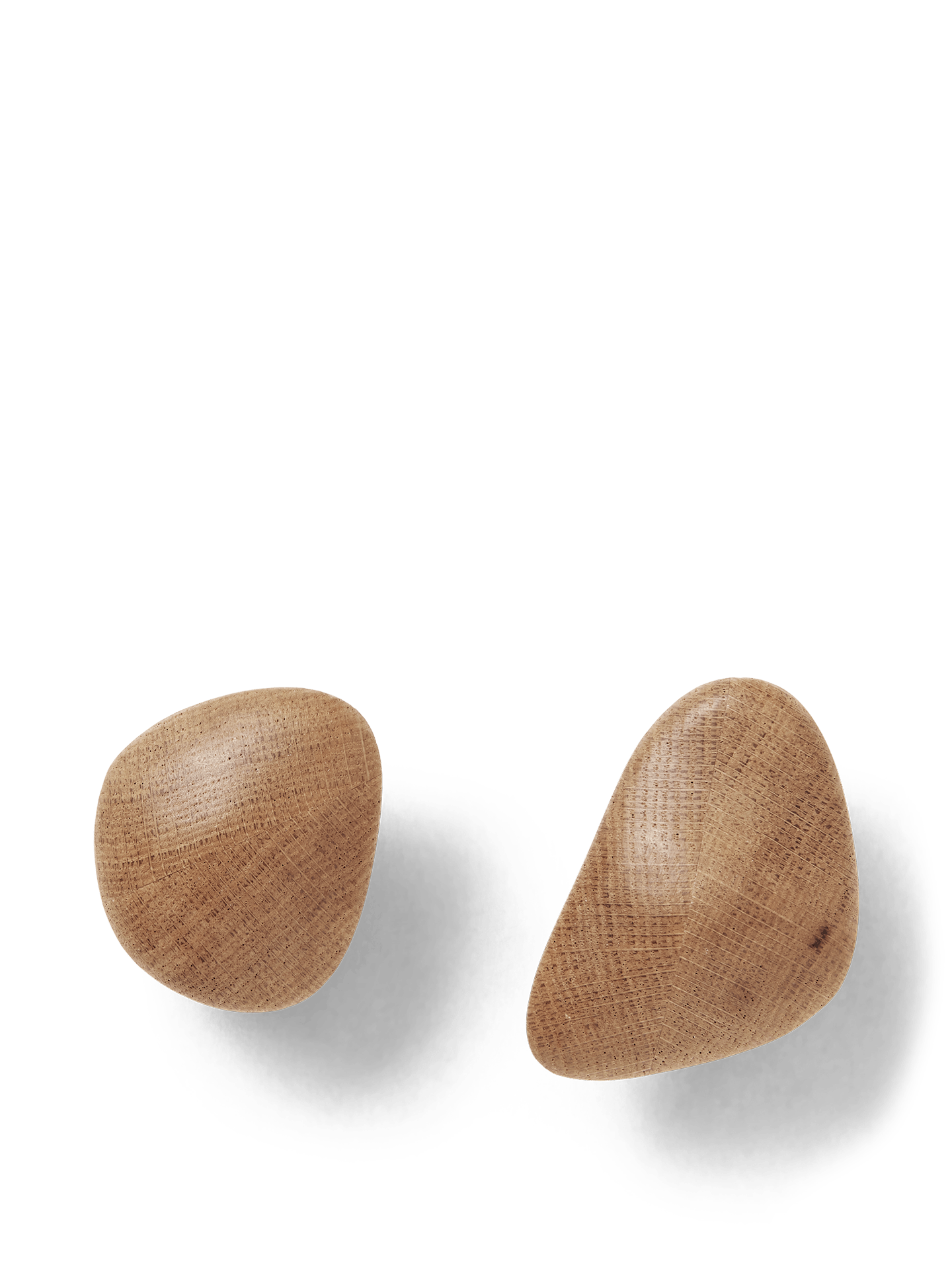 Characterised by their soft curves and sculpted details, the Cairn Hooks will add an artistic and functional touch to your wall. Inspired by cairns, man-made stacks of stones that are often raised for memorial purposes, the organic wooden hooks have been carved from solid, FSC™ certified ash wood. Featuring delicate, rounded edges, the pieces have been treated with a carbonised finish for a distinct look. The Cairn Hooks come as a set of 2, allowing you to effortlessly make room for coats in the hallway, towels in the bathroom or textiles in the kitchen.