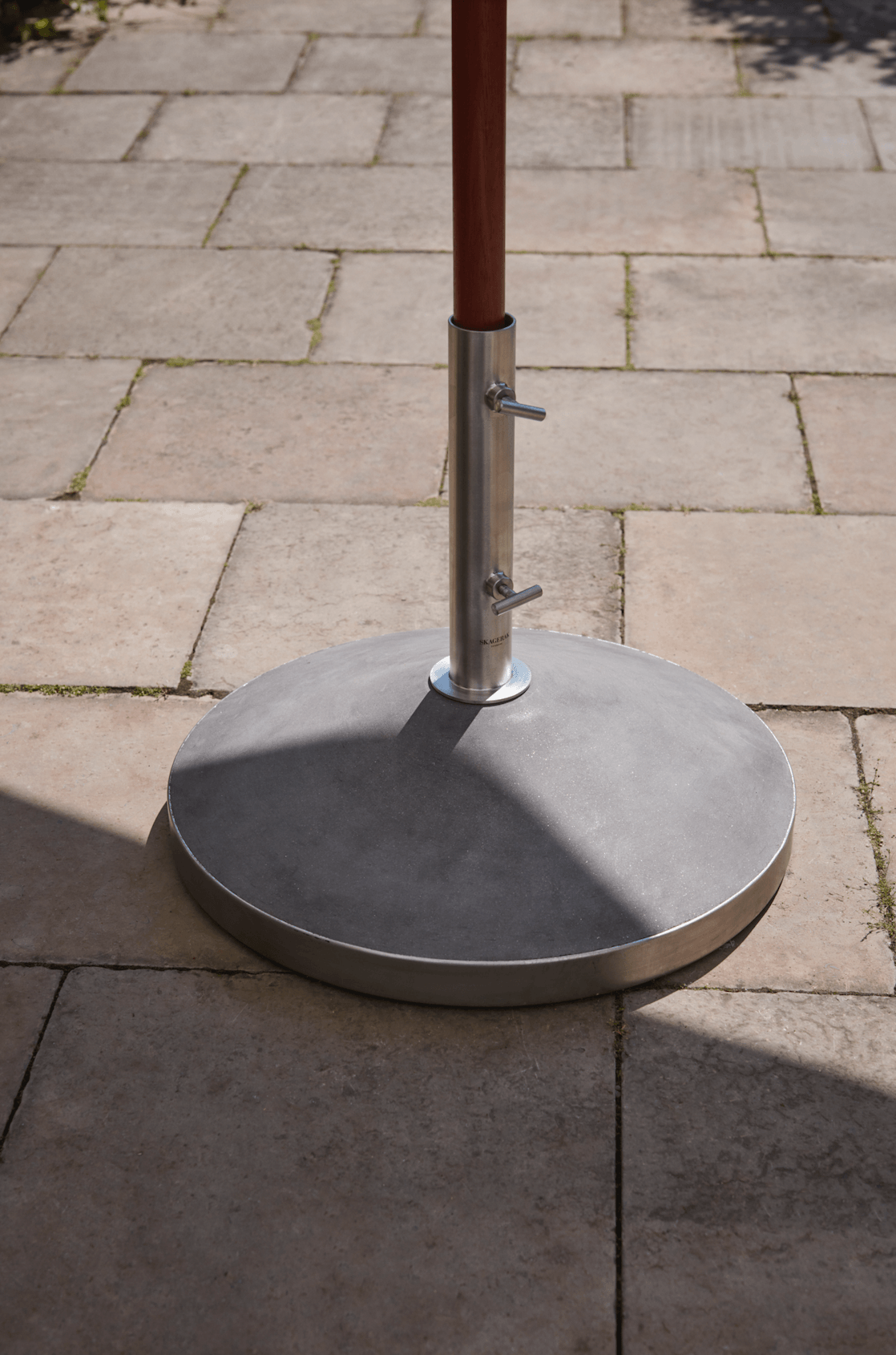 Capri umbrella foot is a functional luxury in steel and concrete with a weight of 110 lbs. The Umbrella foot has handles and wheels, making it easy to move. The wheels elevate the foot from the ground enabling ventilation, while the conoid shape allows rain to drain off. Capri Umbrella Foot, 100 lbs fits with all Umbrellas from Skagerak.