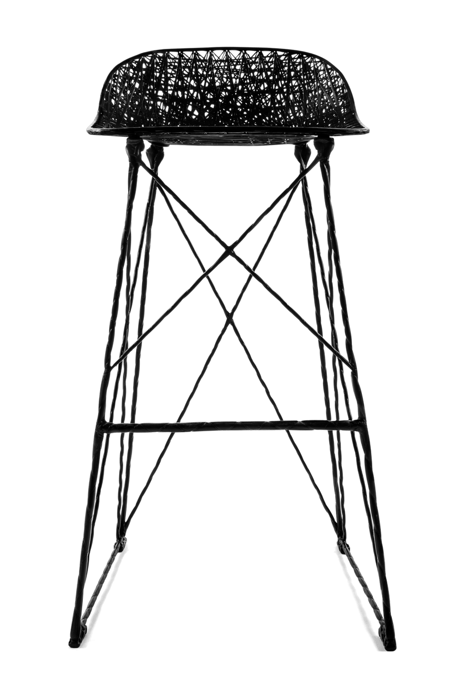 The Moooi Carbon Bar Stool is this weird contradiction that blows people's minds every time. Bertjan Pot and Marcel Wanders created something that looks like it belongs in a sci-fi movie but feels completely normal to use. The whole thing is made from carbon fiber - you know, the stuff they use in race cars and airplanes - except instead of making it look all sleek and automotive, they wove it into this intricate web pattern that's actually kind of beautiful. When you first see one, you think it's going to be this heavy, serious piece of equipment. Then you go to move it and nearly fall over because it weighs basically nothing. I'm talking lighter than most plastic furniture, but the carbon fiber makes it stronger than metal. It comes in two different heights depending on how tall your counter is, and honestly, the engineering is pretty incredible when you think about it.