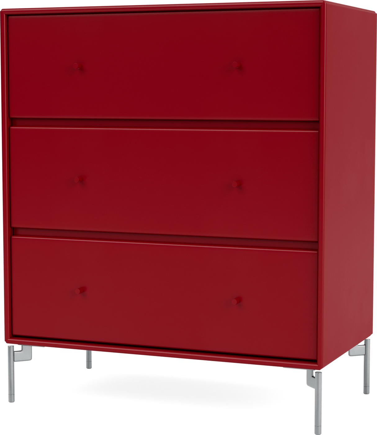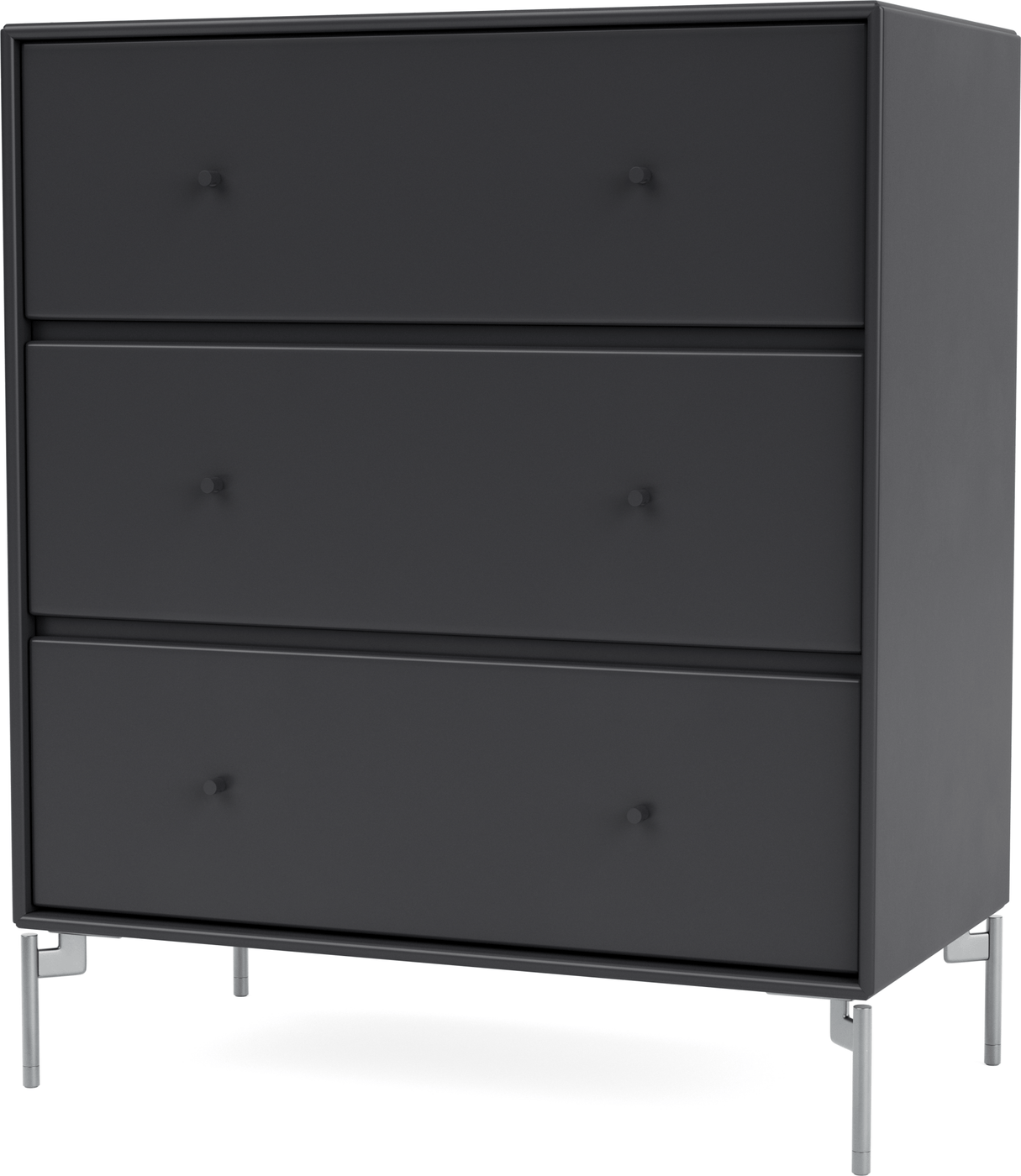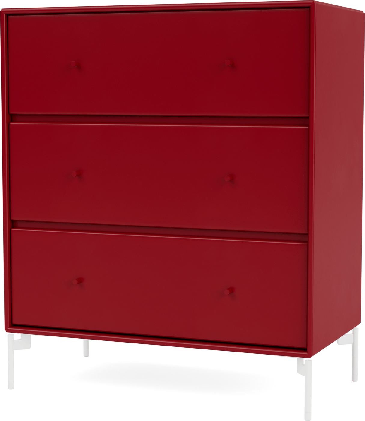 The Carry Dresser is a simple, yet elegant, storage solution. A true testament to the cleverness of Montana’s designers, the Carry Dresser packs a lot of character into three large drawers fitted with hardware of the same color for a monochrome look. Offering a minimalist aesthetic and highly functional storage solutions, the Carry Dresser is available as a wall mount, with legs, or a on a plinth base. The Carry Dresser easily accommodates all your clothing and knickknacks and is available in nine of Montana’s signature color lacquers. Pair the Carry Dresser with the Compile Decorative Shelf and the Coat Shelf for attractive and contemporary storage solutions in bedrooms, offices, playrooms, and more.