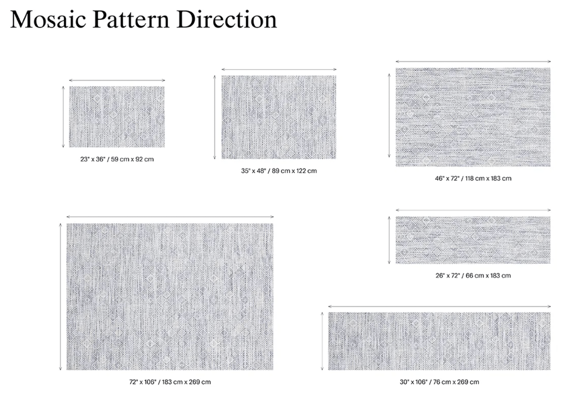 Please see 5th image showing direction of pattern for each size prior to purchasing. Direction of pattern is not the same for all sizes.