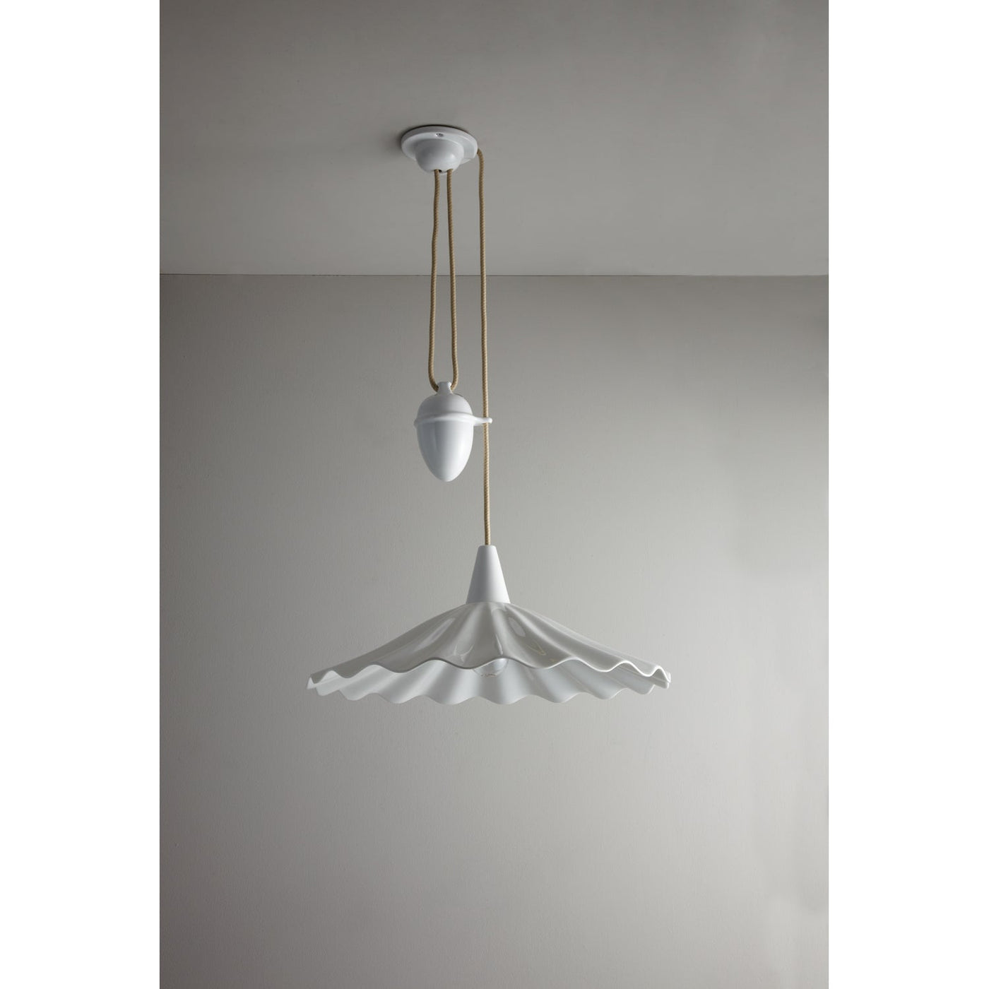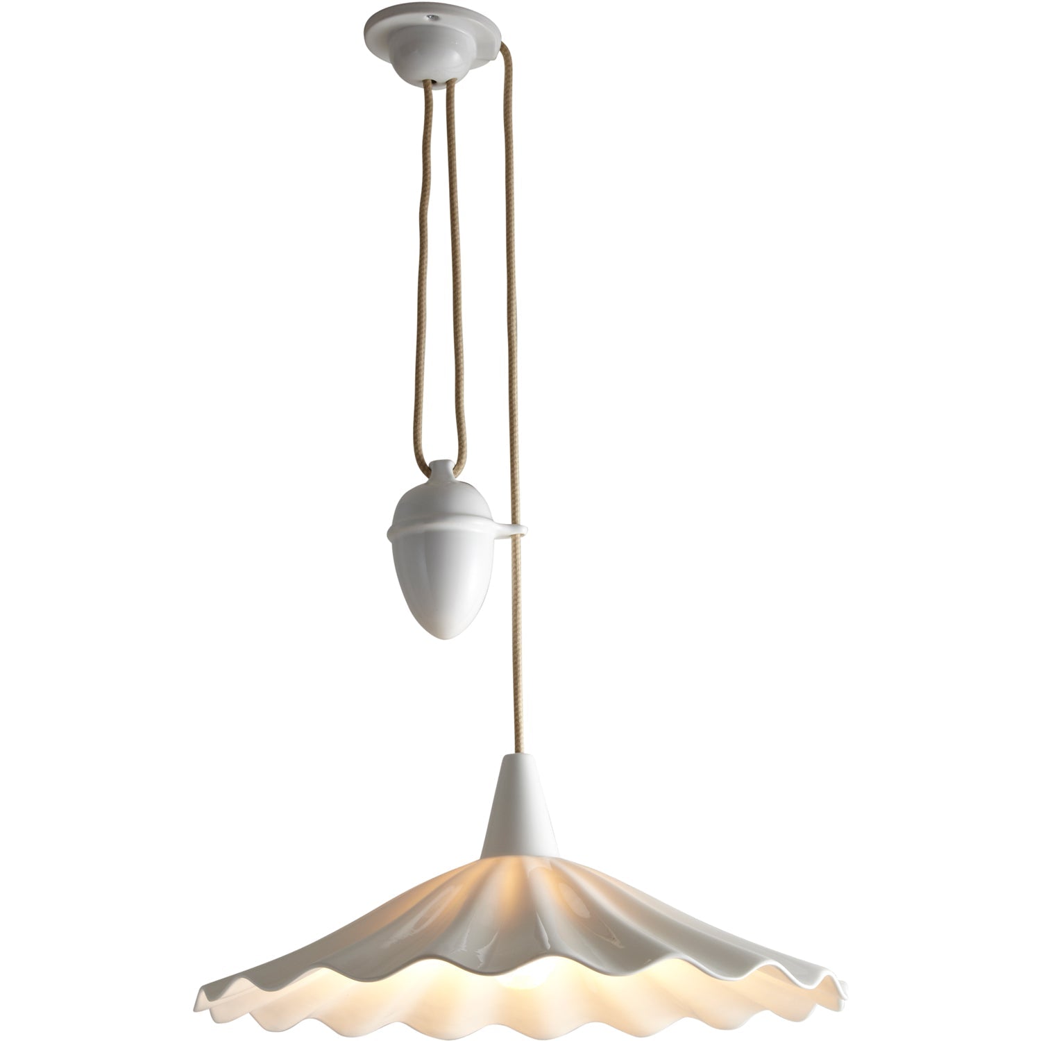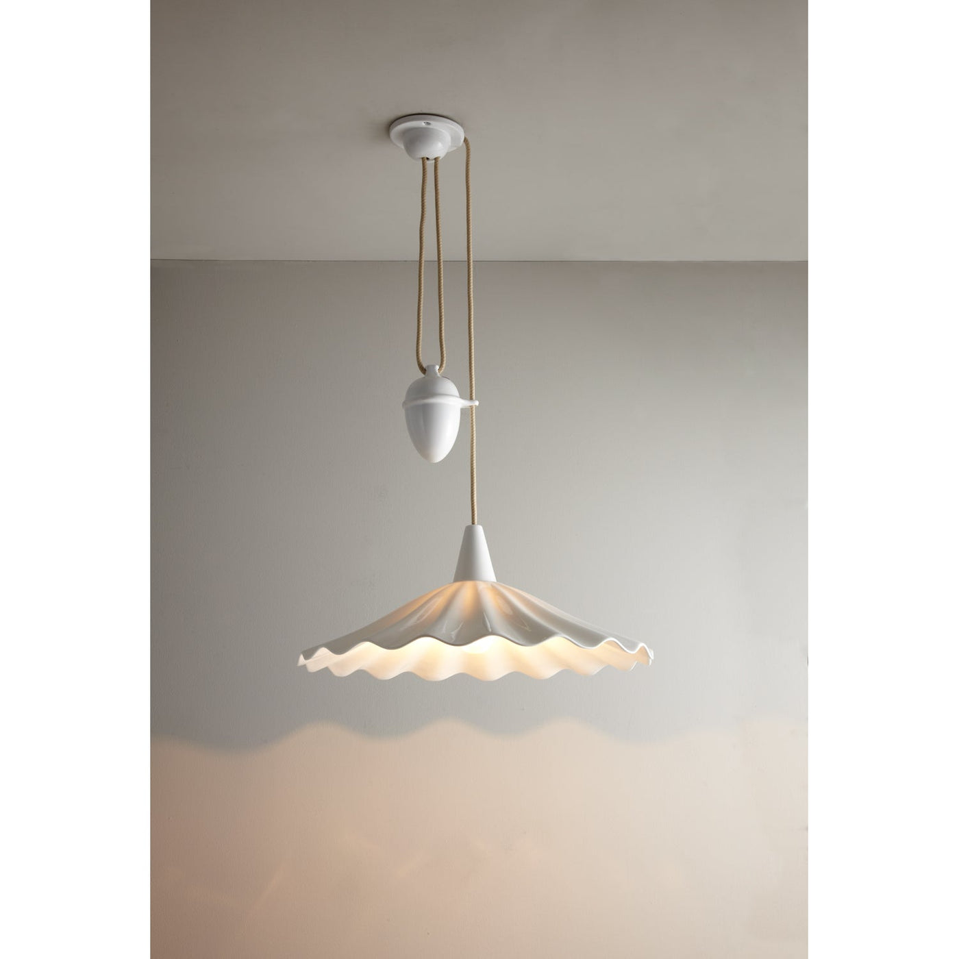 An exquisitely hand crafted bone china pendant light, with a shade that has been inspired by the rolling ocean waves. Bone china has been heated & molded to create this eye-catching Christie light, available either as a Rise & Fall, which has a system adjusting cable lamp height, or Pendant light.