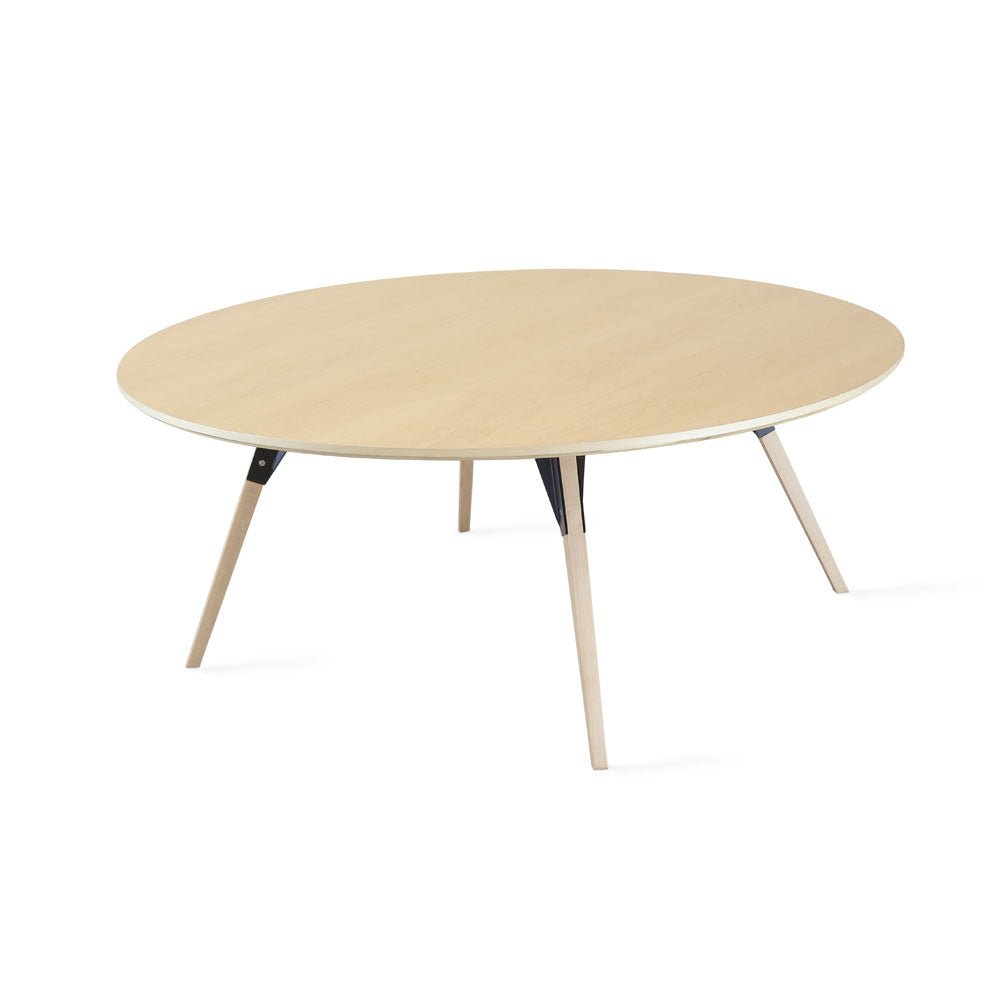 The Tronk Clarke Large Circle Coffee Table is the perfect blend of industrial charm and Scandinavian minimalism. With its smooth Maple veneer top and exposed powder-coated stainless-steel hardware, this coffee table adds a modern yet timeless touch to any space. The angled legs further enhance its sleek, contemporary design. Ideal for compact living rooms or offices, the Tronk Clarke Large Circle Coffee Table offers a neutral presence that complements a variety of décor styles, making it an excellent addition for those looking to elevate their interiors with functional elegance.
