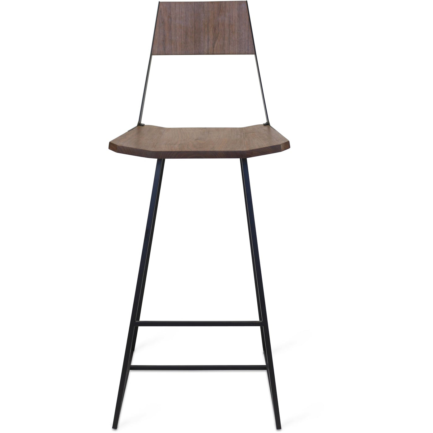 The Tronk Clarkester Bar Stool - Walnut effortlessly blends industrial and Scandinavian design elements, offering a clean and modern aesthetic. Featuring a squared seat and backrest made from solid American walnut, it pairs beautifully with sleek, triangular legs and exposed stainless-steel hardware. Whether placed in a restaurant, at a breakfast bar, or around a high-top table, this bar stool elevates any space, providing both style and comfort. Its minimalist design ensures it complements various contemporary interiors with ease, making it a versatile addition to your home or business.