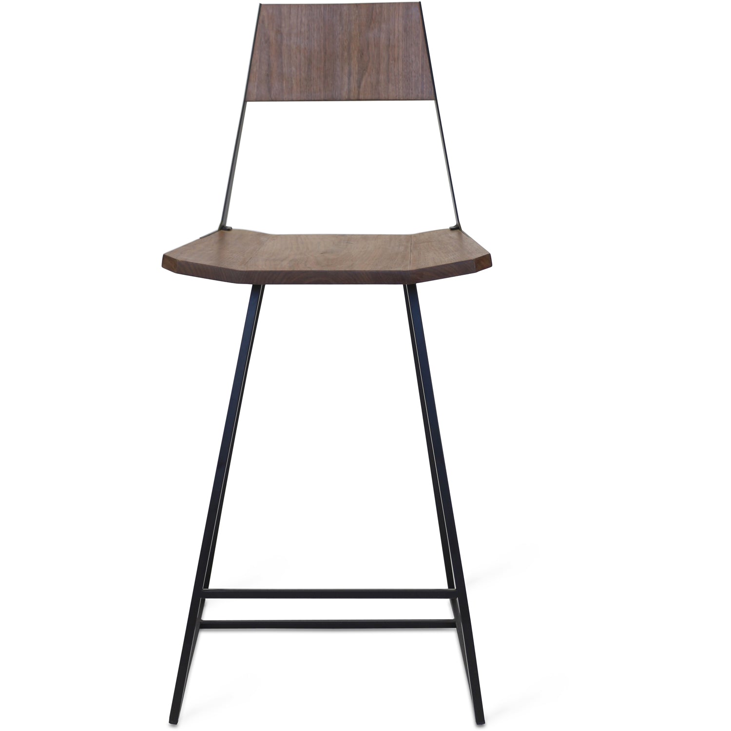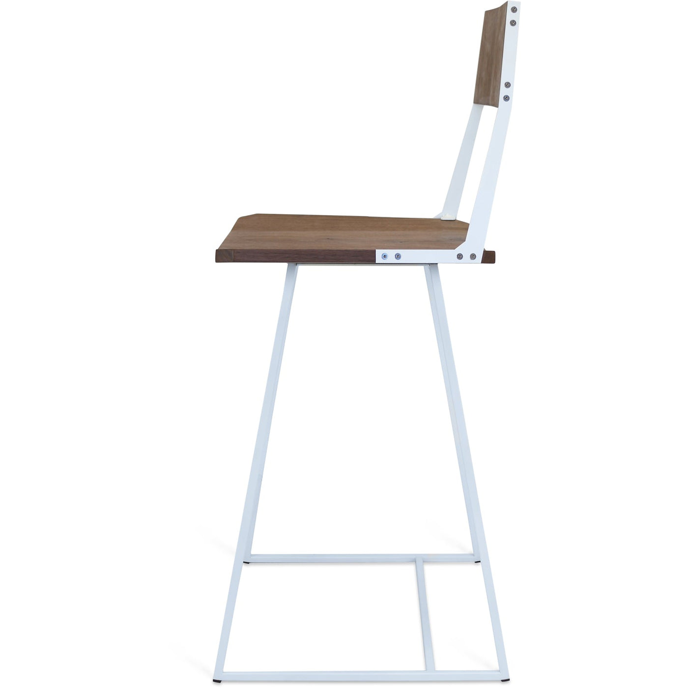 The Tronk Clarkester Counter Stool seamlessly blends industrial and Scandinavian design elements, offering a modern and sophisticated look. Crafted from durable American Walnut, the stool features a clean, minimalist design with a squared seat and backrest. The matte powder-coated steel frame, available in black or white, highlights exposed stainless steel bolts for a touch of raw elegance. Whether placed at a kitchen island, breakfast bar, or high-top table, this stool elevates the ambiance with its stylish yet functional design.