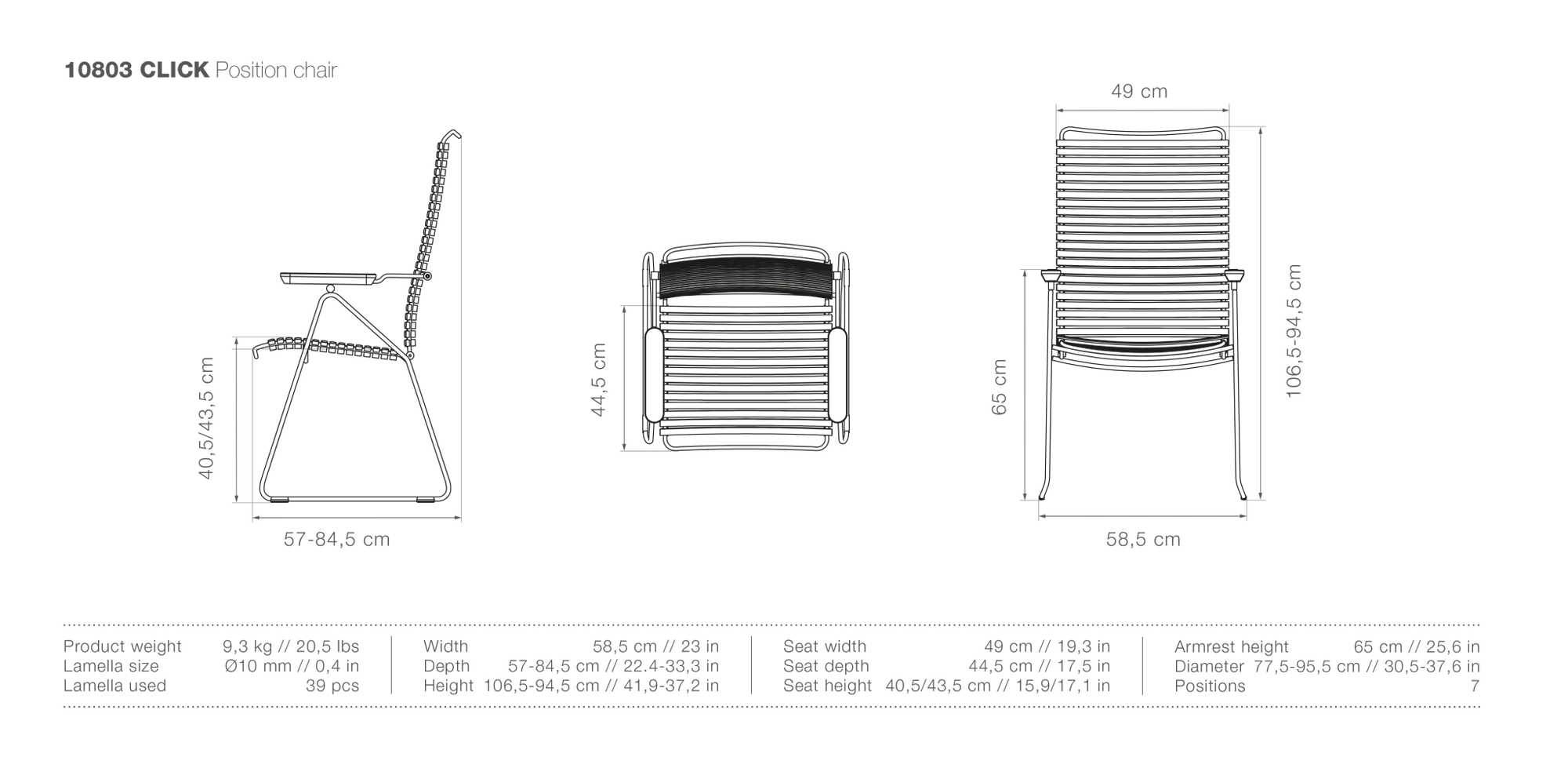 The CLICK Outdoor Position Chair by Houe offers a perfect balance of comfort, style, and flexibility. Designed for outdoor living, it features a backrest with seven adjustable positions. Whether you're dining with friends or leaning back to relax, it easily adapts. Moreover, the powder-coated steel frame ensures strength, while the plastic slats click in and out for easy cleaning. The CLICK Outdoor Position Chair makes customization simple and maintenance quick.