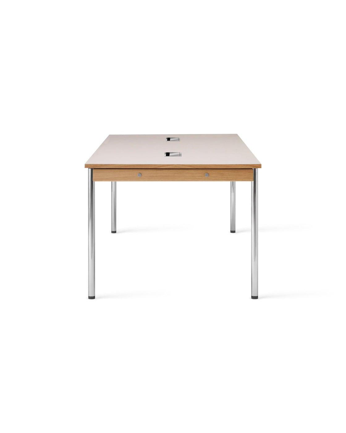 The Audo Copengahen Co Table blends minimalist elegance with practical functionality. Its solid oak trim and sleek steel frame create a balanced design, perfect for modern interiors. The spacious surface offers plenty of room for work or dining, adapting effortlessly to different needs. Thoughtfully designed with durability in mind, this table complements Audo Copenhagen seating, making it an ideal choice for homes and offices alike.