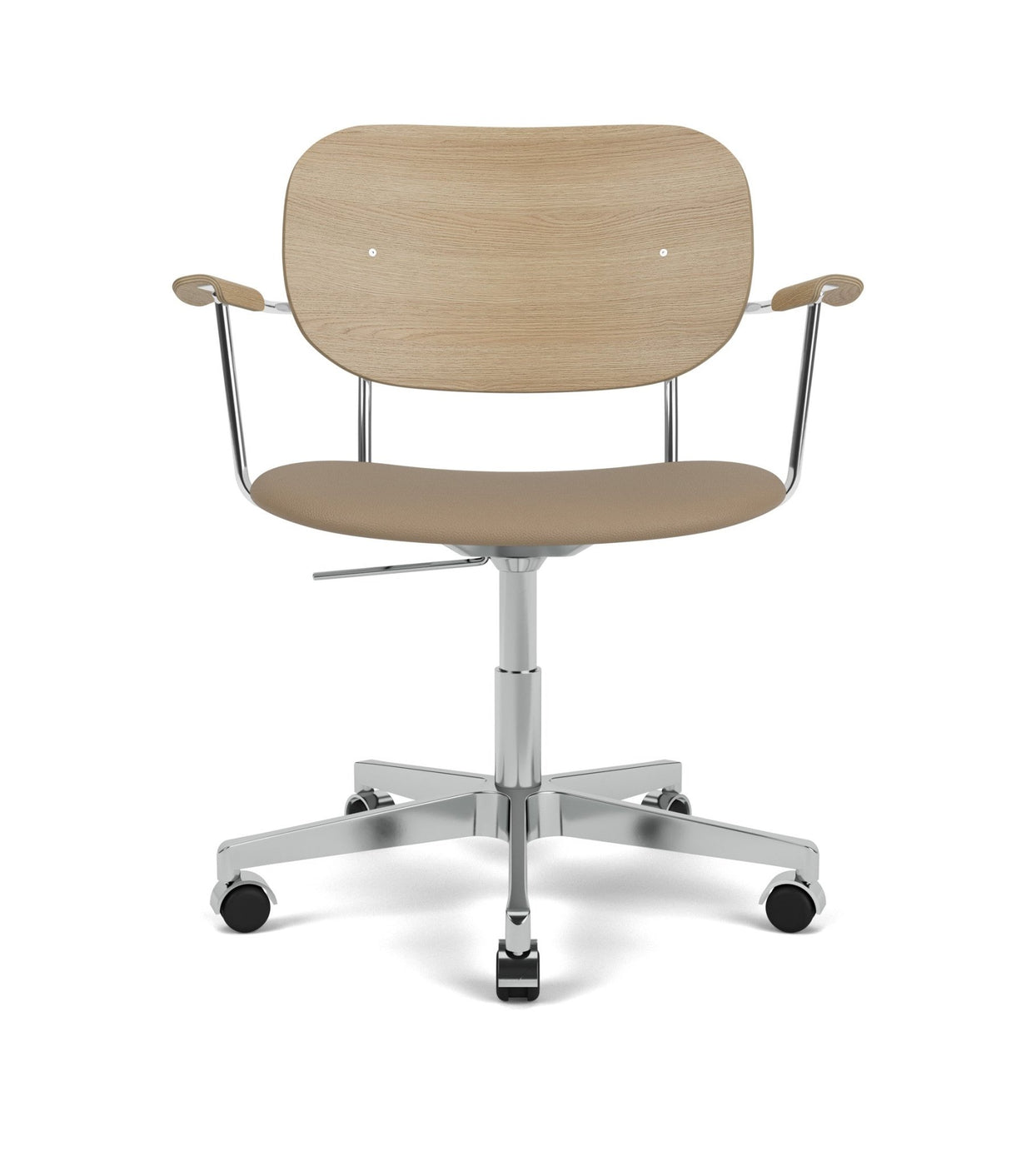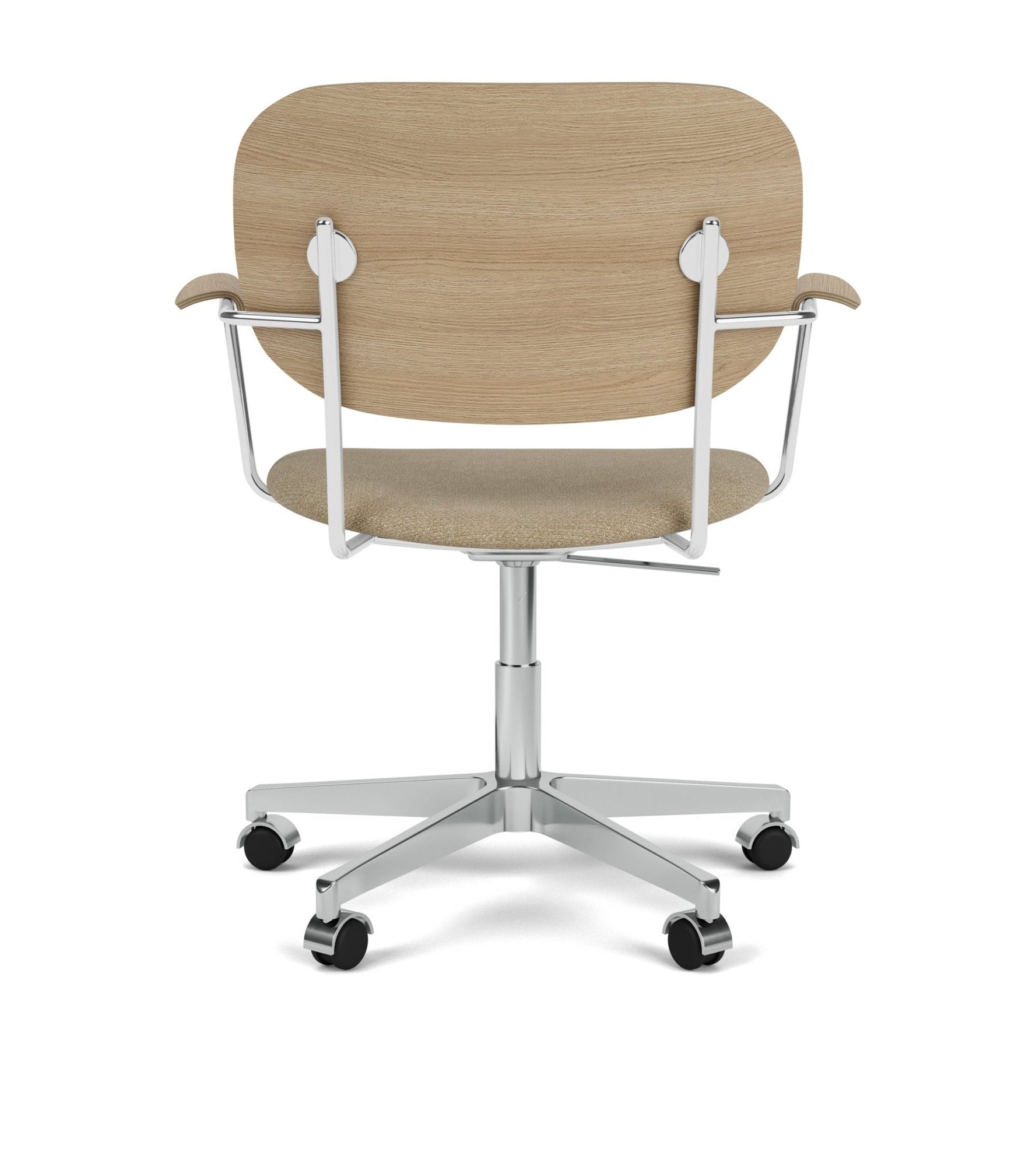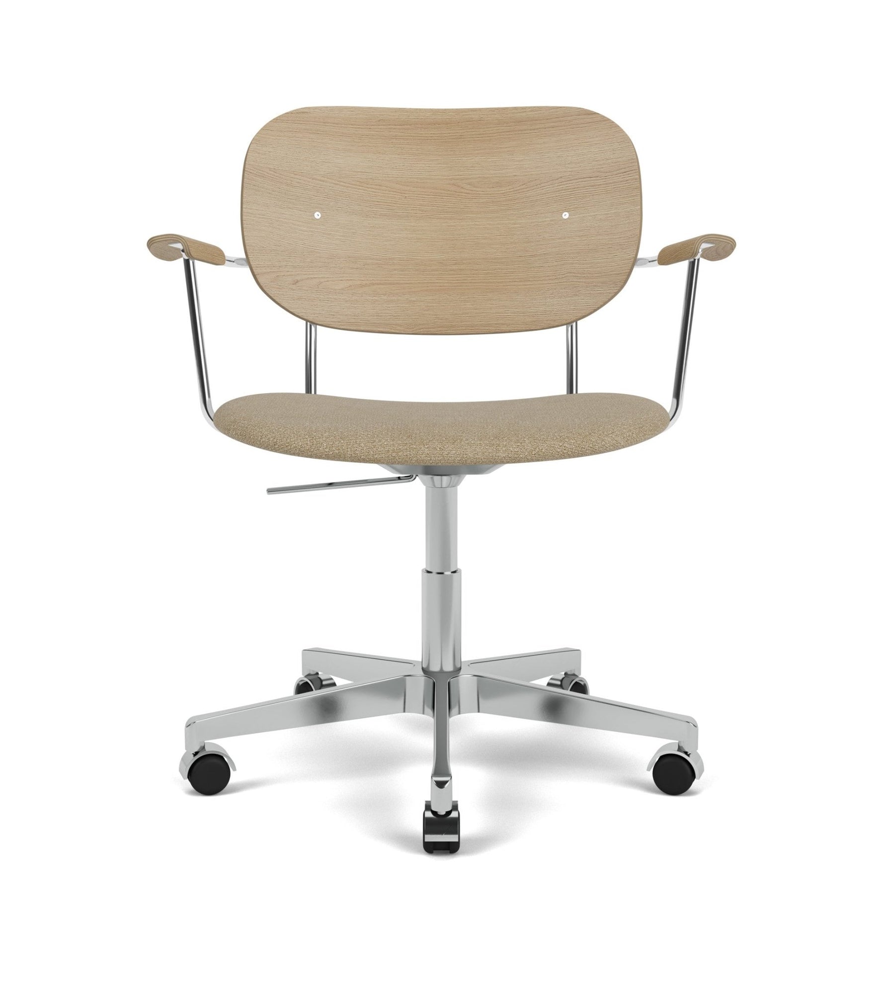 The Co Task Chair seamlessly integrates sitting comfort and flexible function into its minimalist expression. Designed for a wide range of work settings and set on a five-star Black swivel base with casters, a height-adjustable feature ensures adaptability to workspaces and user preferences, promoting ergonomic comfort for users of different heights. Together with supportive armrests and an upholstered seat, a flex tilt function enhances comfort, allowing for adjustment to the preferred seating position for optimal support during extended periods of use.