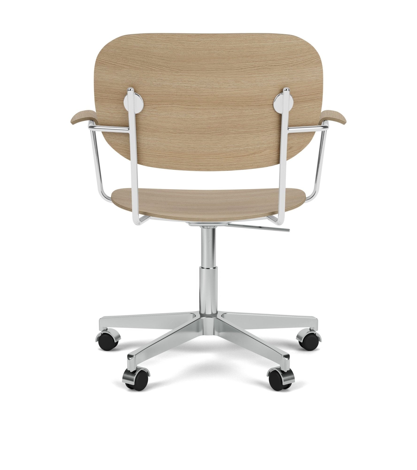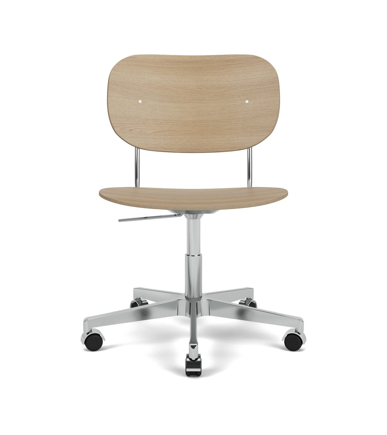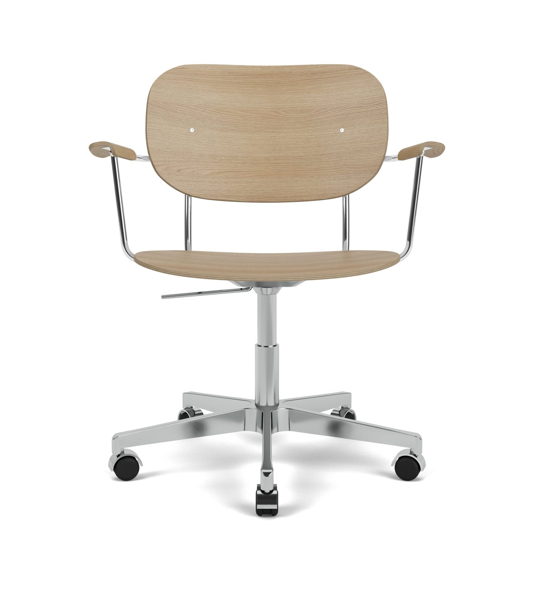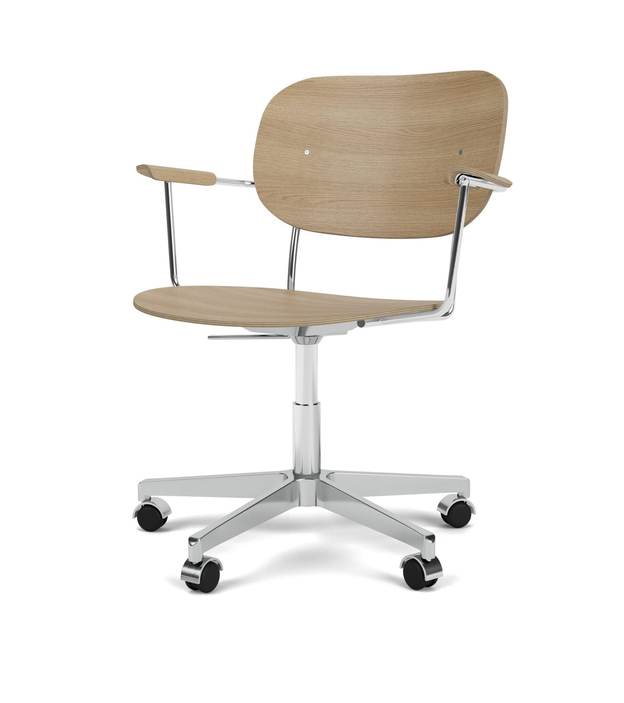 The Co Task Armchair seamlessly integrates sitting comfort and flexible function into its minimalist expression. Designed for a wide range of work settings and set on a five-star Black or Aluminium swivel base with casters, a height-adjustable feature ensures adaptability to workspaces and user preferences, promoting ergonomic comfort for users of different heights. Together with supportive armrests, a flex tilt function in the seat and back enhances comfort, allowing for adjustment to the preferred seating position for optimal support during extended periods of use.