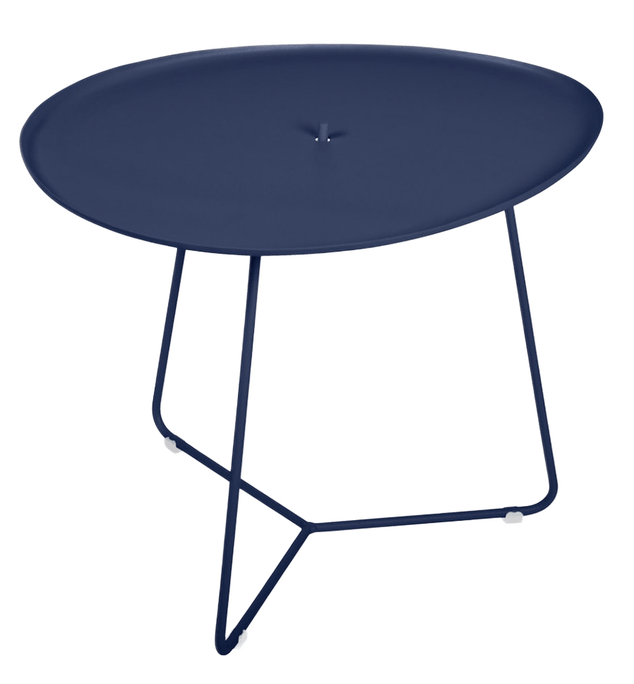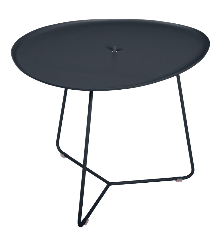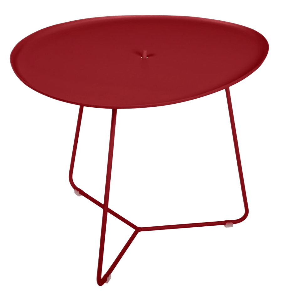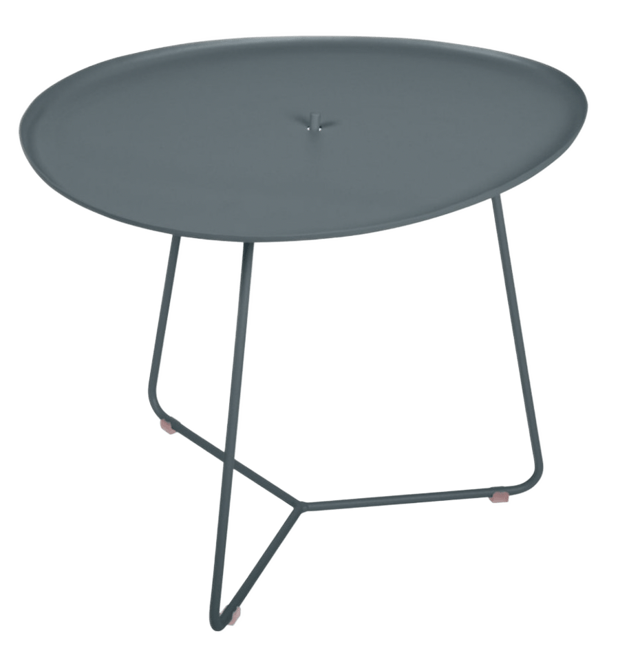 Though similar in design to the side table in the same collection, the Cocotte Low Table features an aluminum tabletop that can be removed and used as a separate piece. The top itself can function as a tray for serving and entertaining.
