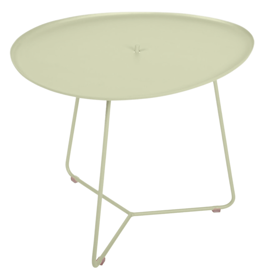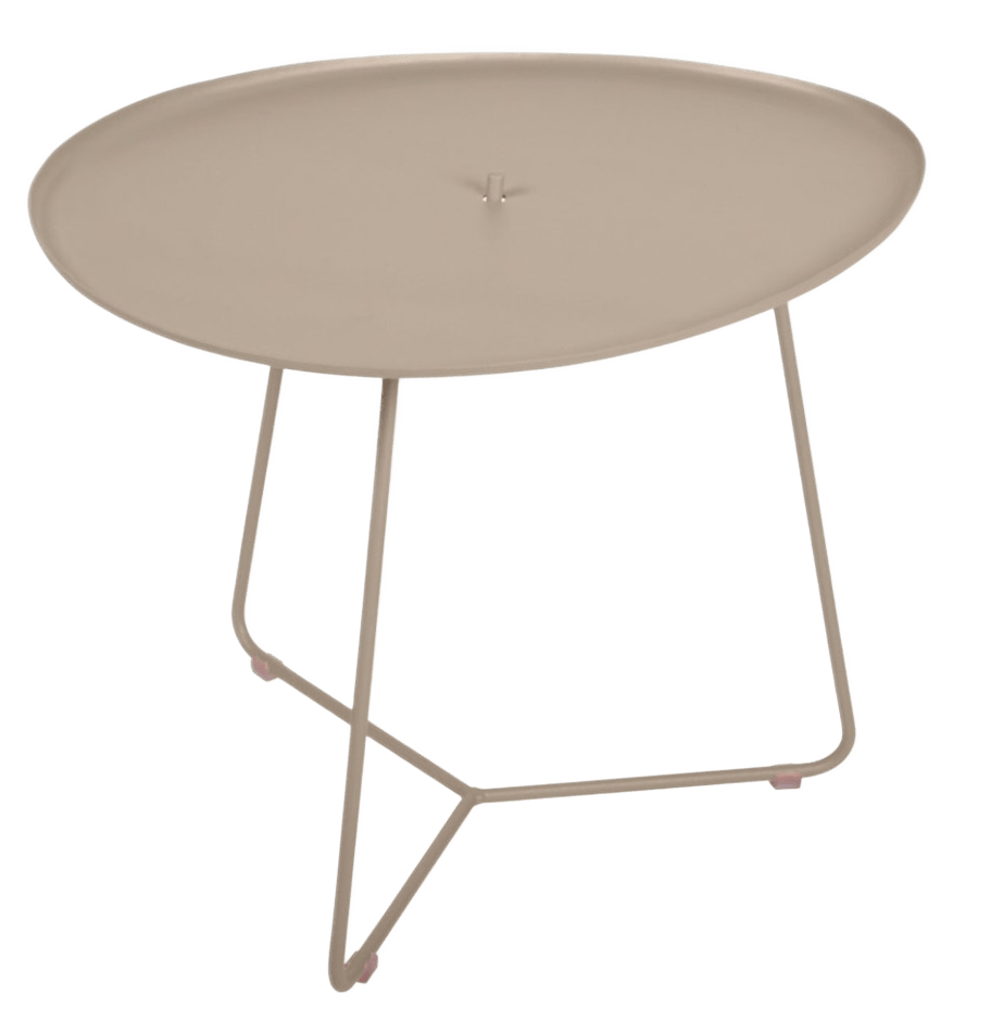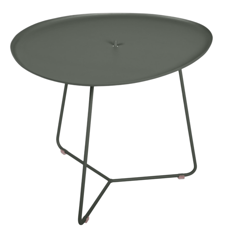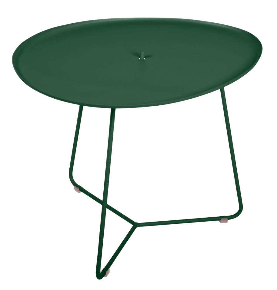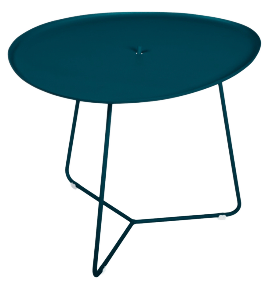 Though similar in design to the side table in the same collection, the Cocotte Low Table features an aluminum tabletop that can be removed and used as a separate piece. The top itself can function as a tray for serving and entertaining.