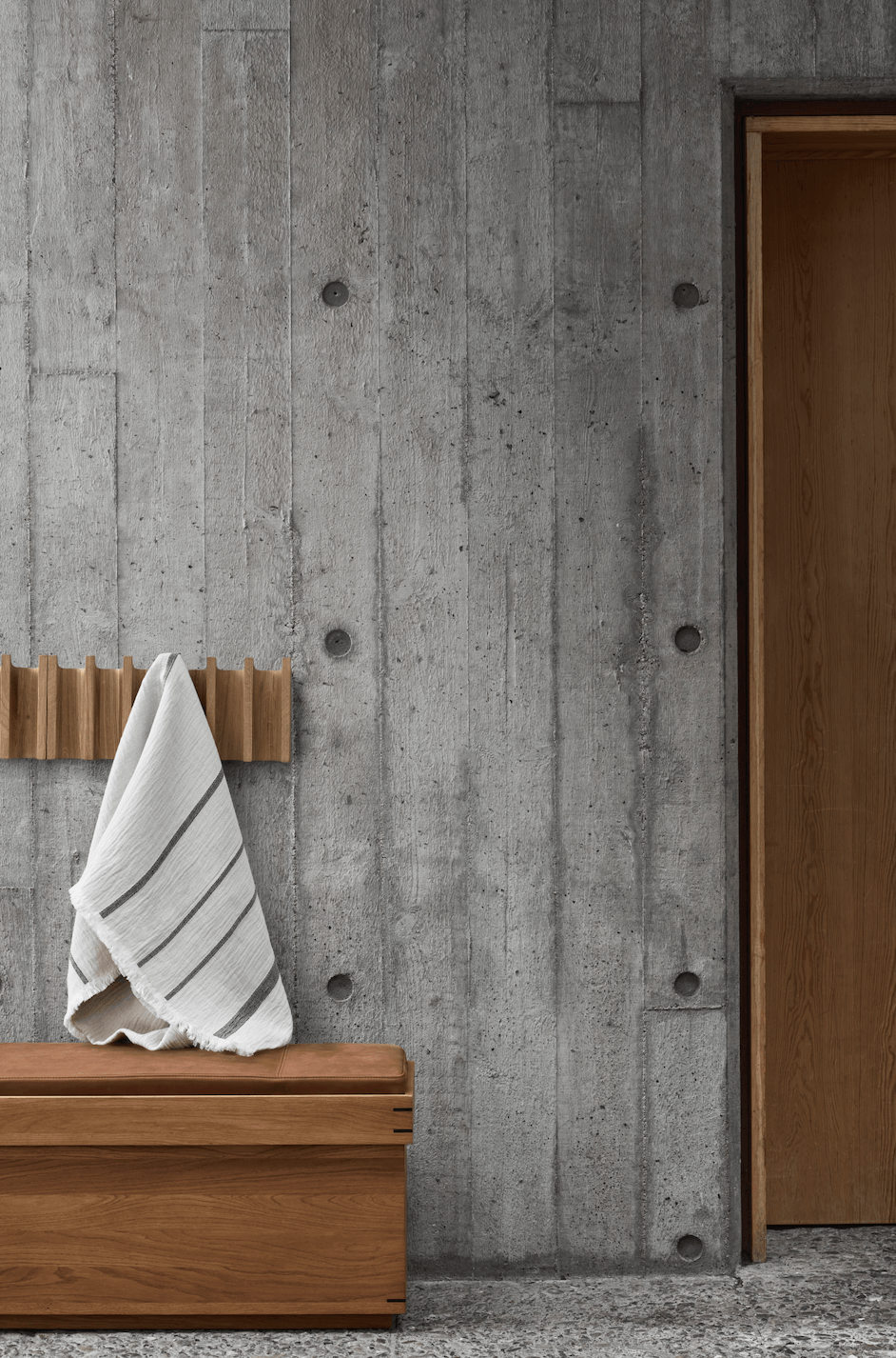 The design of the coat rack is inspired by conic pillars, which is reflected in the beautiful, clean lines and the simple repetition of the structure. Get the full effect of the coat rack by hanging several together – this way you will not only get more storage space, you will also have a stunning architectural art installation in the style of vertical columns which will undoubtedly make a decorative statement. The material used for the coat rack is solid oak, thereby bringing a sense of nature and warmness into your home for a cool New Nordic vibe.