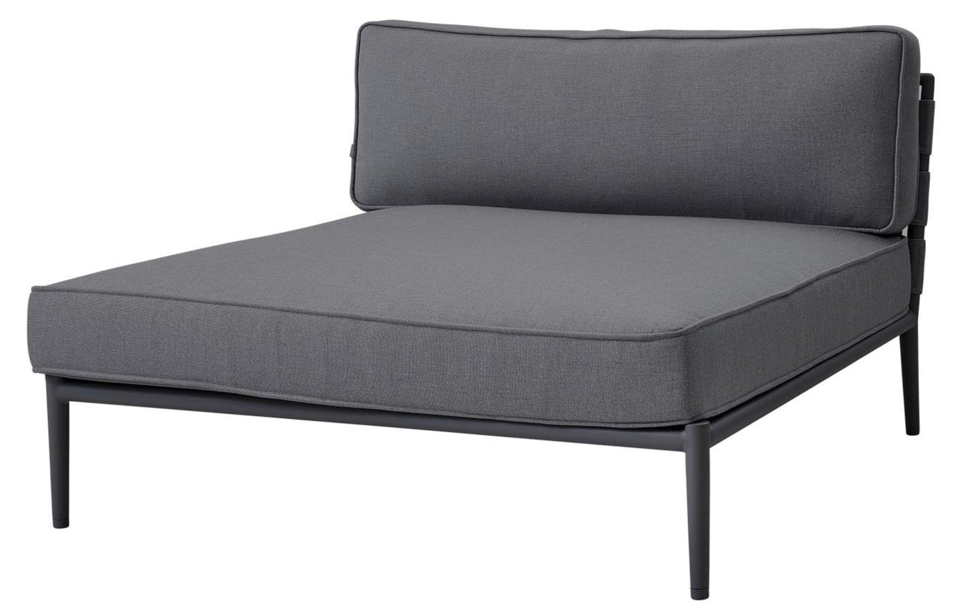 This luxuries piece of garden furniture was added to the Conic Collection to offer real relaxation possibilities. The daybed can be used together with the other Conic modules or as a fantastic stand along piece inviting to take a break. With its width of 140cm it offers great space for two adults. It comes with all-weather cushions that allow rain water to drain through the cushion. The best result is achieved when the cushions are put in vertical position. However, they will also drain when in normal position, but it will be slower. Conic daybed is designed to fit in and stand out in many types of surroundings. The design is contemporary yet comfortable and cosy. The taupe colours will bland in with many styles and depending on choice of side tables, coffee tables and scatter cushions, one can bring it to the more inviting white colour tones or a more fresh looking style with the aqua colour available in our scatter cushion assortment. Conic daybed fits well with the On-the-move side tables as the height of both the large and small version fits well the sitting height of the daybed. Conic daybed also fits well with the low Conic coffee table that can be connected to the frame thus creating a nice unit.