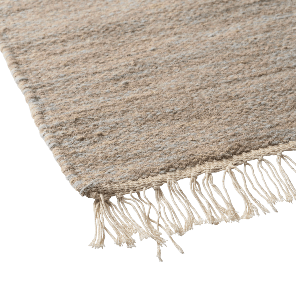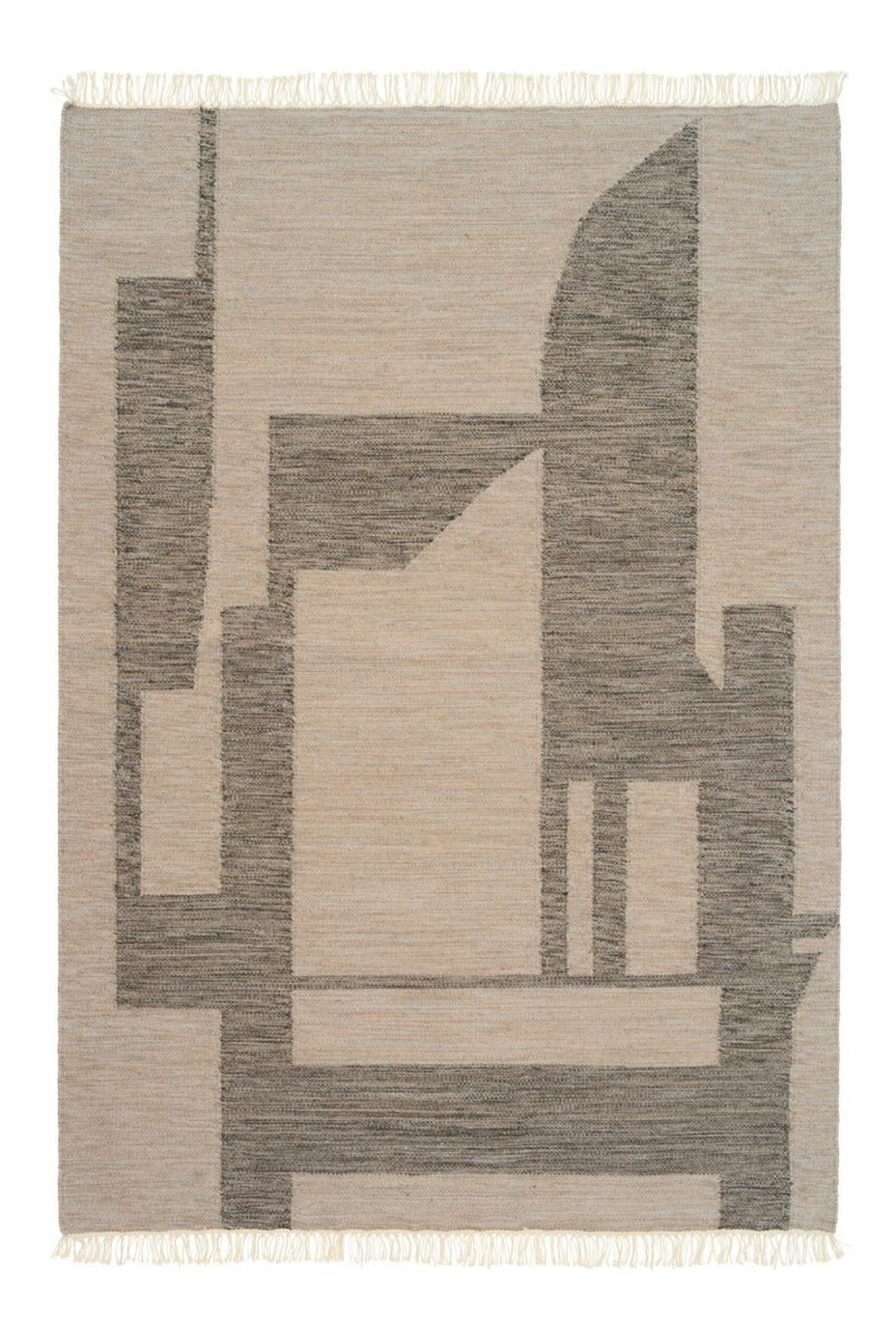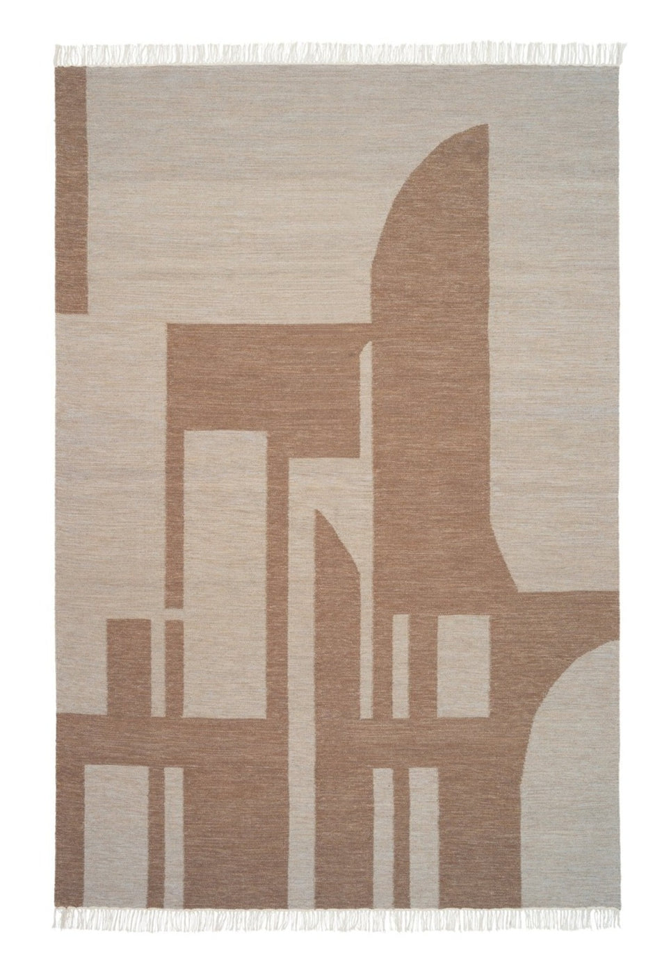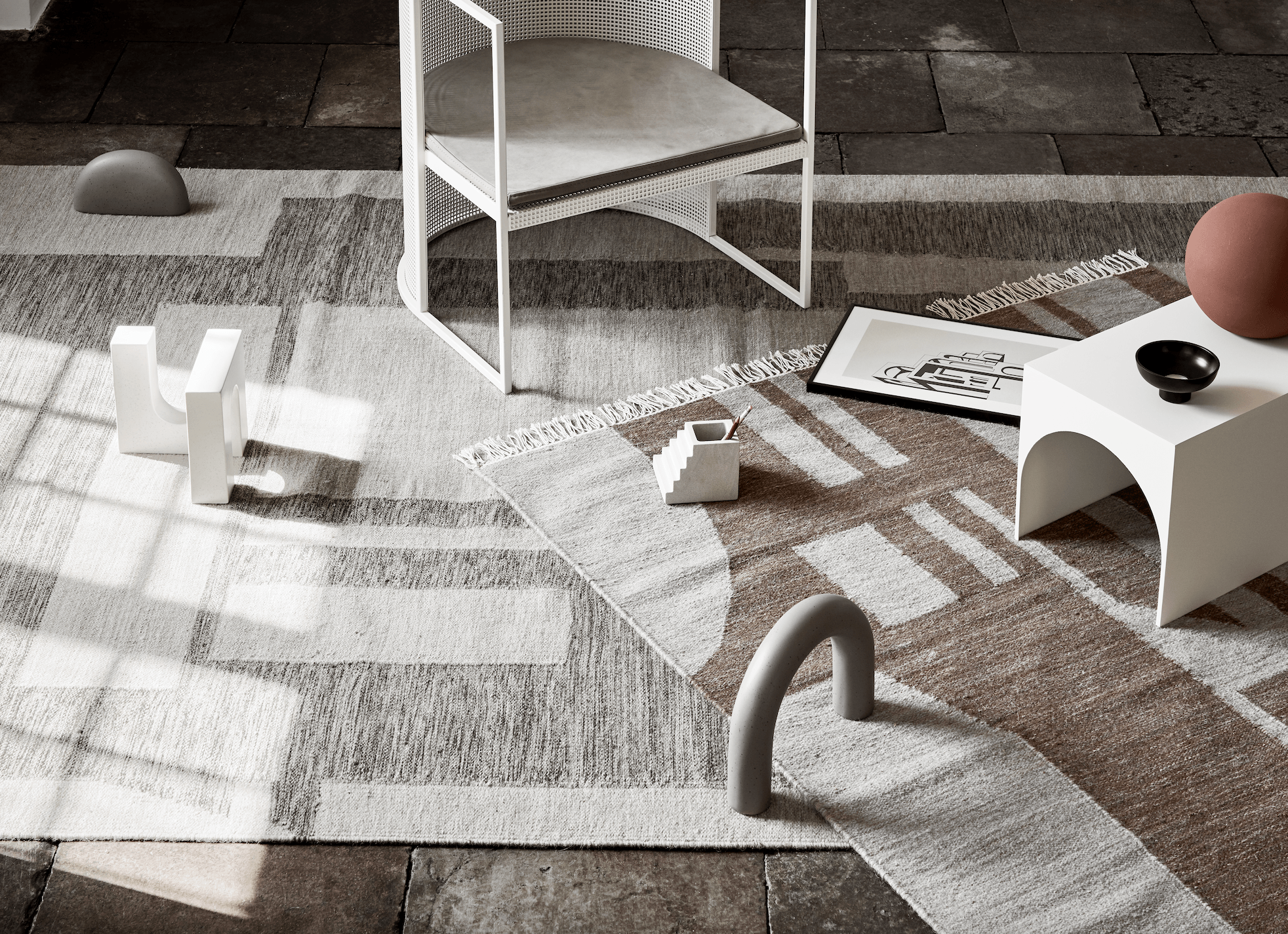 The contemporary kelim rug from Kristina Dam Studio is made in brown wool. A rug with a graphic pattern combining traditional kelim craftsmanship with our minimalistic and sculptural design language. The contemporary kelim rug is a modern rug that sends the message that you’re committed to making a style statement. The rug is almost an art piece for your floor with a striking good look that can elevate any space. Like most rugs the comtemporary kelim is rectangular, making it easy to furnish with, in hallways as well as in the bedroom, dining room or wherever it is needed. This rug measures 300x200cm and is also available in a smaller version measuring 200x140cm. Rugs (and especially rugs made of wool) are furthermore great for sound dampening. If a given room in your home has an echo, consider covering its floor with one or several rugs. The contemporary rug series from Kristina Dam Studio is made of 90% wool and 10% cotton. Rugs and carpets made of wool are popular for a reason. First of all the soft and warming qualities of wool rugs make them both inviting and luxurious. Furthermore wool is a great material with natural attributes that makes it both inflammable and naturally dirt repellent. Breathe life into any interior with a beautiful, high-quality danish designed rug like the contemporary Kelim. Find our entire collection of elegant designer kelim rugs in different sizes and shades.