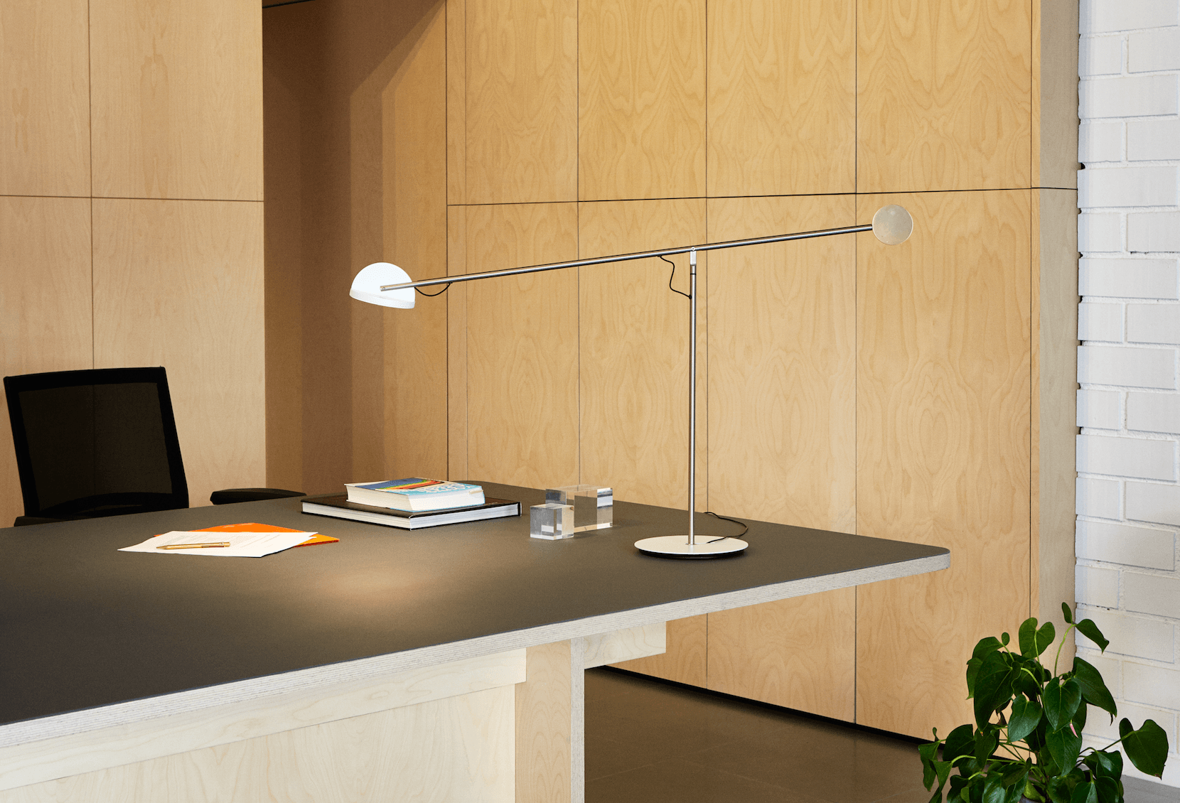 The Marset Copernica M Table Lamp is a sleek, modern lighting piece that feels almost weightless. Thanks to its smart counterweight system, the arm and shade move easily with just a touch. Moreover, its steel and aluminum frame creates a strong, balanced structure. Whether placed on a desk, beside a lounge chair, or styled with Scandinavian design furniture, this lamp fits naturally into any modern interior.