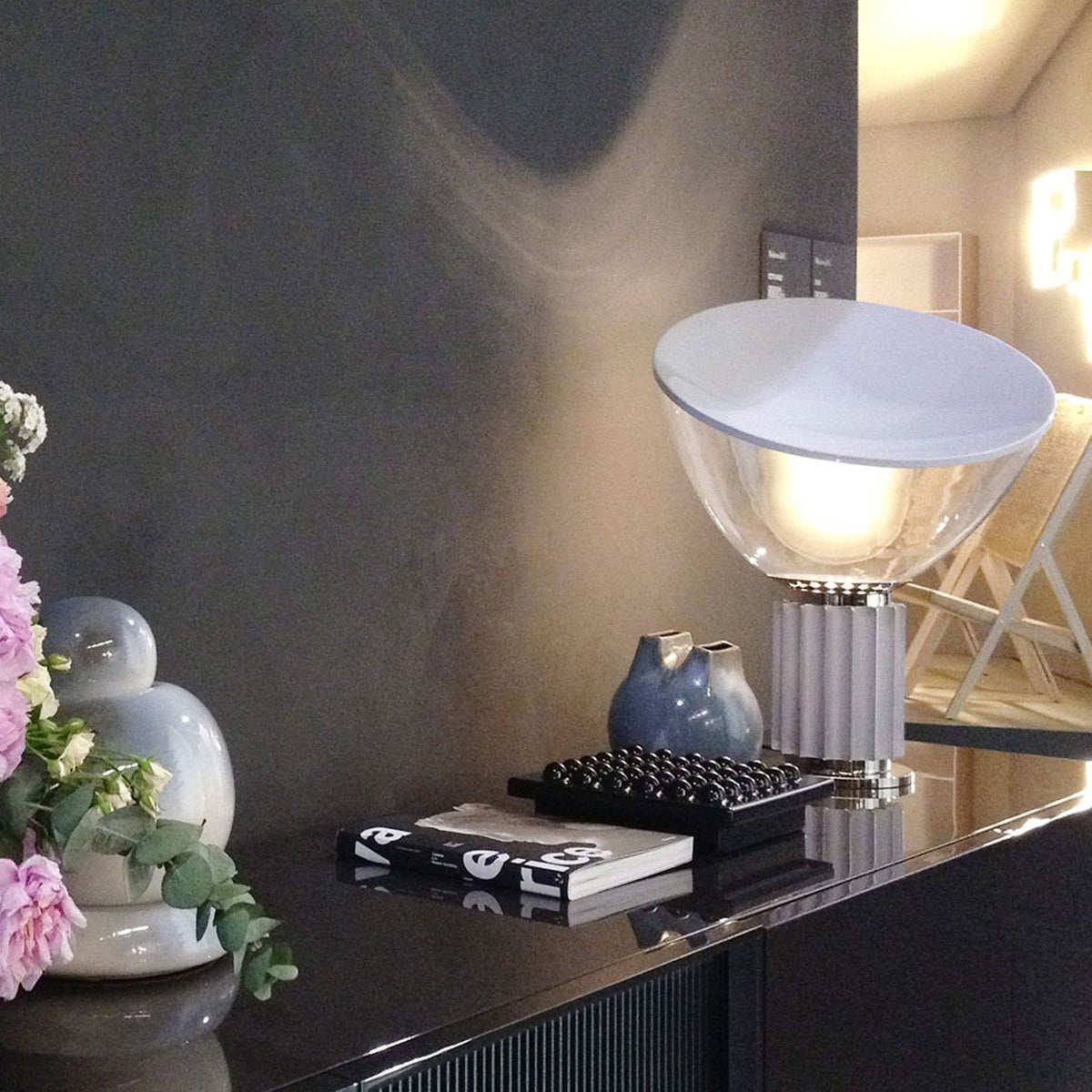 The Flos Taccia Small Table Lamp combines vintage charm with modern function. Designed by the Castiglioni brothers in 1962, it features a spun-aluminum reflector and a blown glass diffuser. This combination creates a soft, diffused light that enhances any room. The lamp’s sleek design and available finishes, including violet, make it a stylish addition to various interiors.