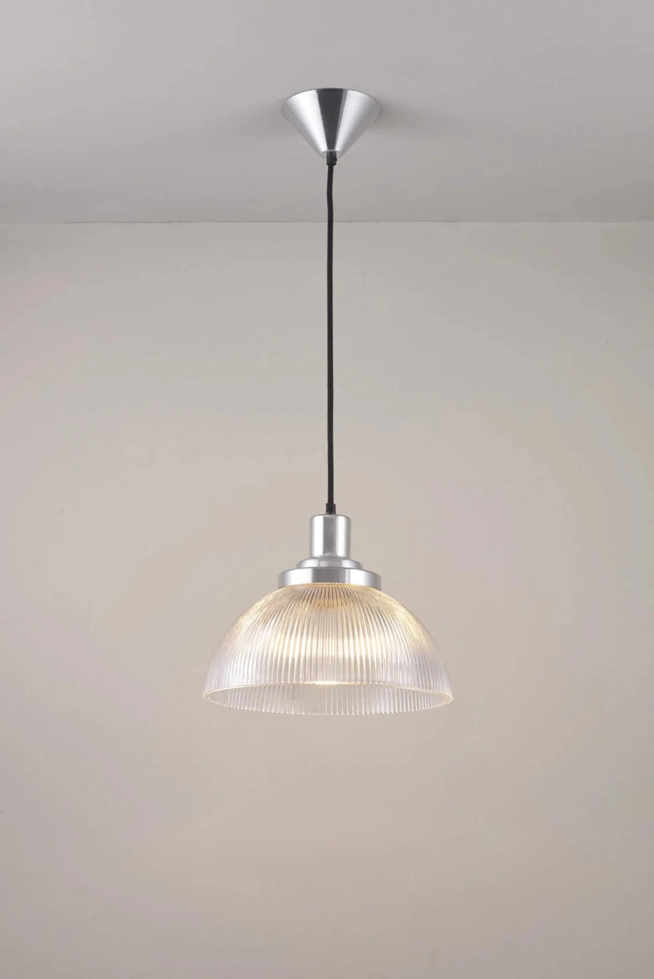 What makes this pendant exceptional is the sophisticated prismatic technology built into every ridge of the glass shade. The thick, fluted reflector ensures bright yet comfortable lighting by eliminating harsh glare while maximizing light distribution - perfect for areas where you need serious illumination without eye strain. The elegant chrome finish adds refined industrial character while the black cotton braided cable provides authentic period detailing. At 12 inches wide, it delivers impressive light coverage without overwhelming residential spaces, and the dimmable capability means it adapts seamlessly from bright work lighting during the day to ambient mood lighting for evening relaxation. The quality construction ensures this pendant will provide decades of reliable performance.