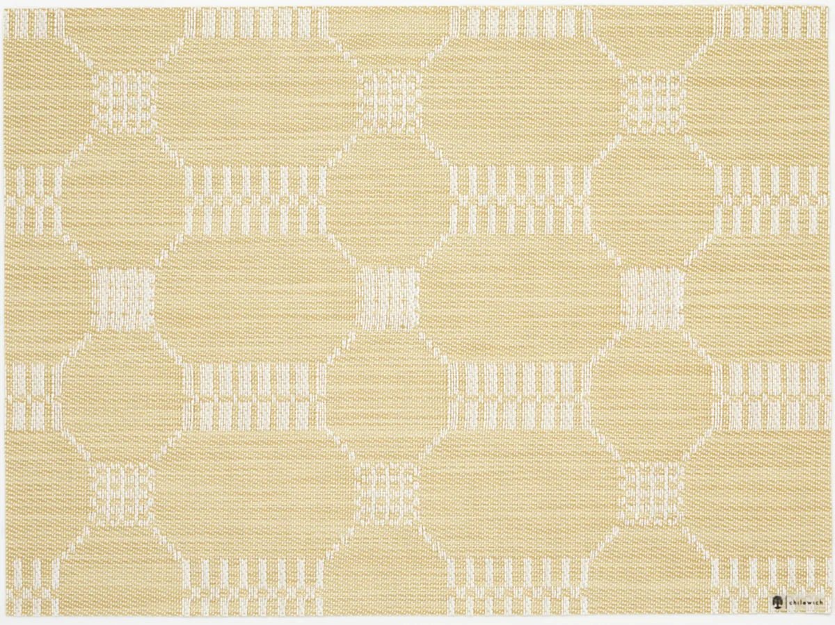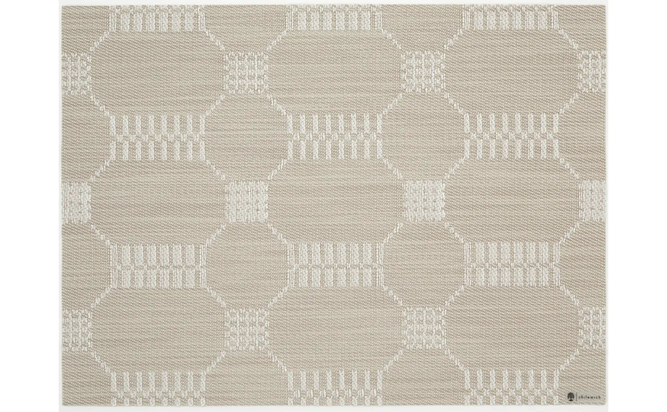 Rich texture that thrives indoors and outdoors. In a lively geometric weave developed especially for the collection, this high-performance placemat gains added depth from multi-tonal yarns.
