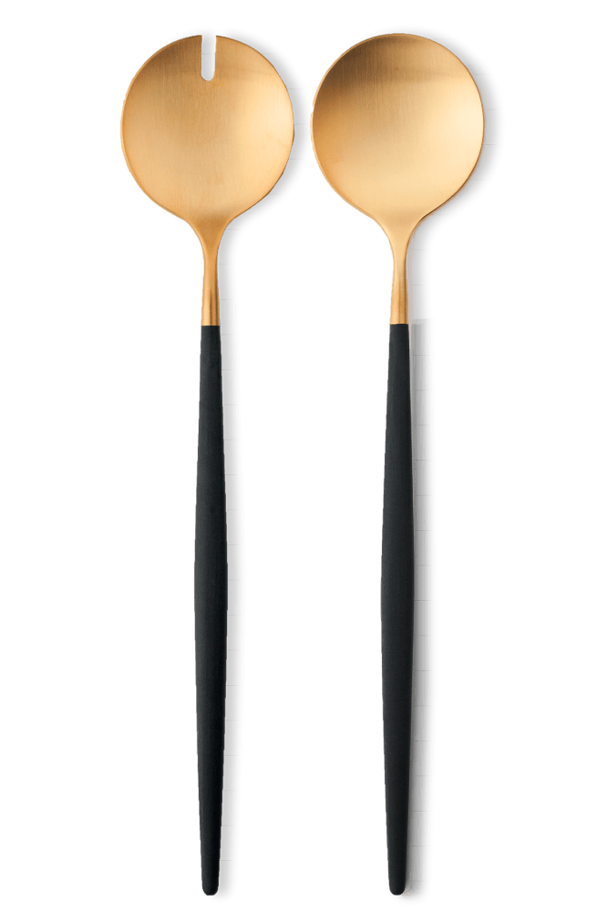Balancing contemporary design with everyday function, the Cutipol Goa Salad Servers - Brushed Gold with Black Handle are perfect for serving greens, grains, or pasta with ease and style. The smooth, ergonomic handles and durable construction make these servers comfortable to use, while their refined appearance elevates any table setting. Whether adding to an existing Cutipol Flatware collection or expanding your Cutipol Cutlery, the Cutipol Goa Salad Servers - Brushed Gold and Black Handle make an unforgettable impression.