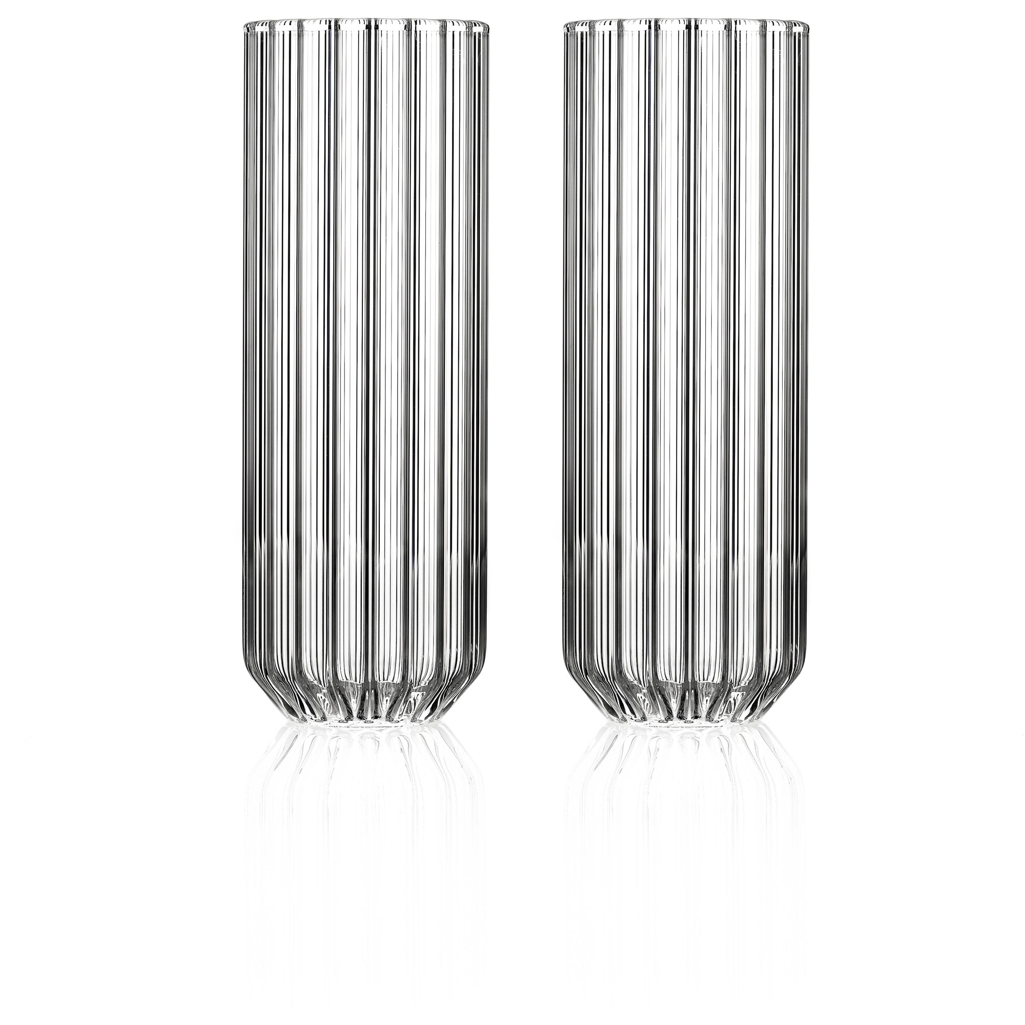 Each piece is handcrafted by master glassblowers of fluted Boroscilicate glass allowing for thermal resistance for a range of hot and cold applications.