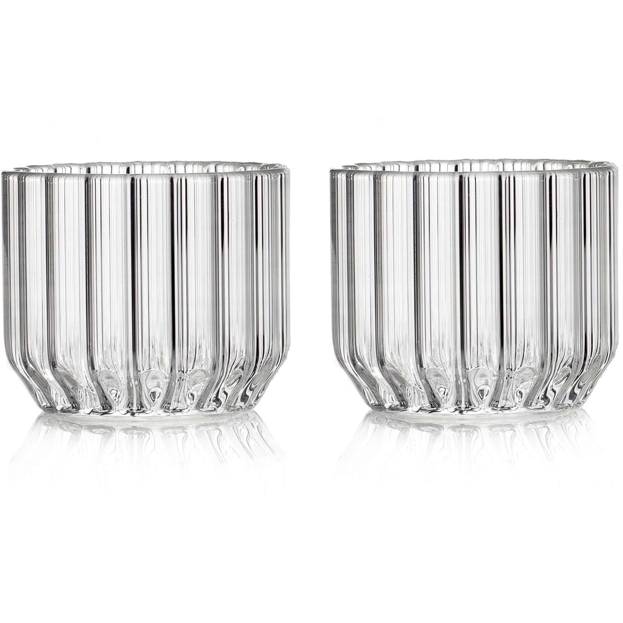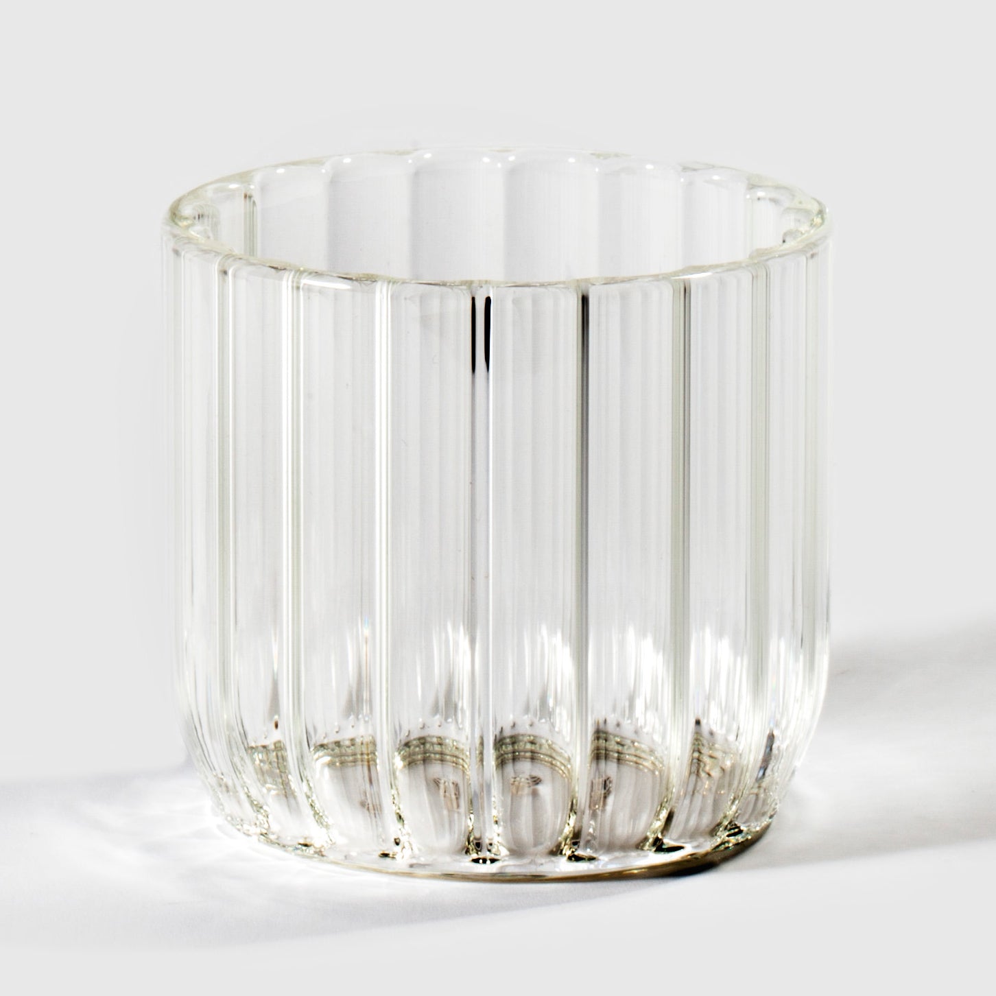 Each piece is handcrafted by master glassblowers of fluted Boroscilicate glass allowing for thermal resistance for a range of hot and cold applications.