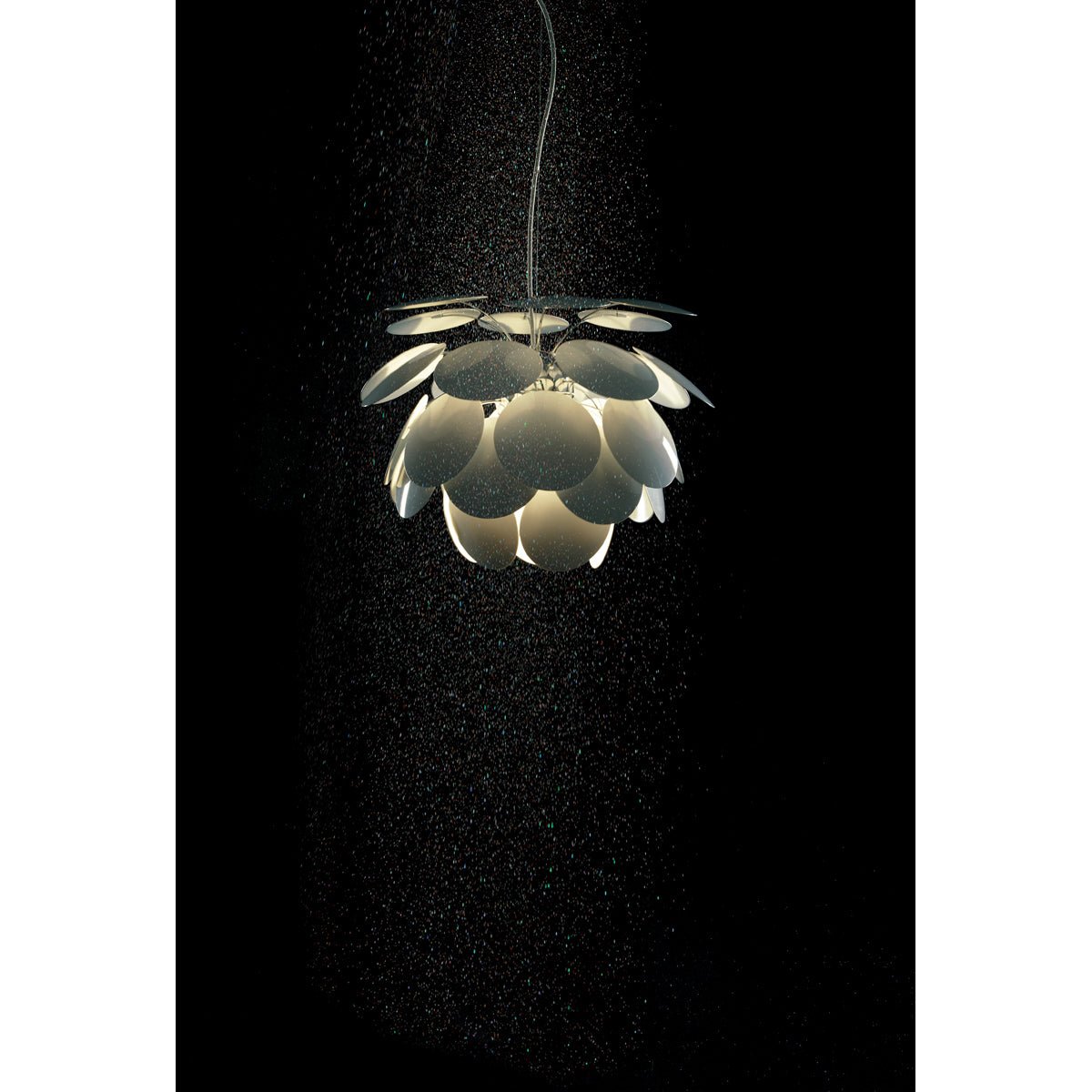 The Discoco Pendant 68 by Marset is an exceptional lighting fixture that blends both style and function. Featuring 35 reflective discs around a polished chrome core, it casts light downward while reflecting and diffusing it in different directions. This unique design creates an alluring dance of light and shadow in any room. It’s ideal for complementing modern lighting and scandinavian furniture in your home.