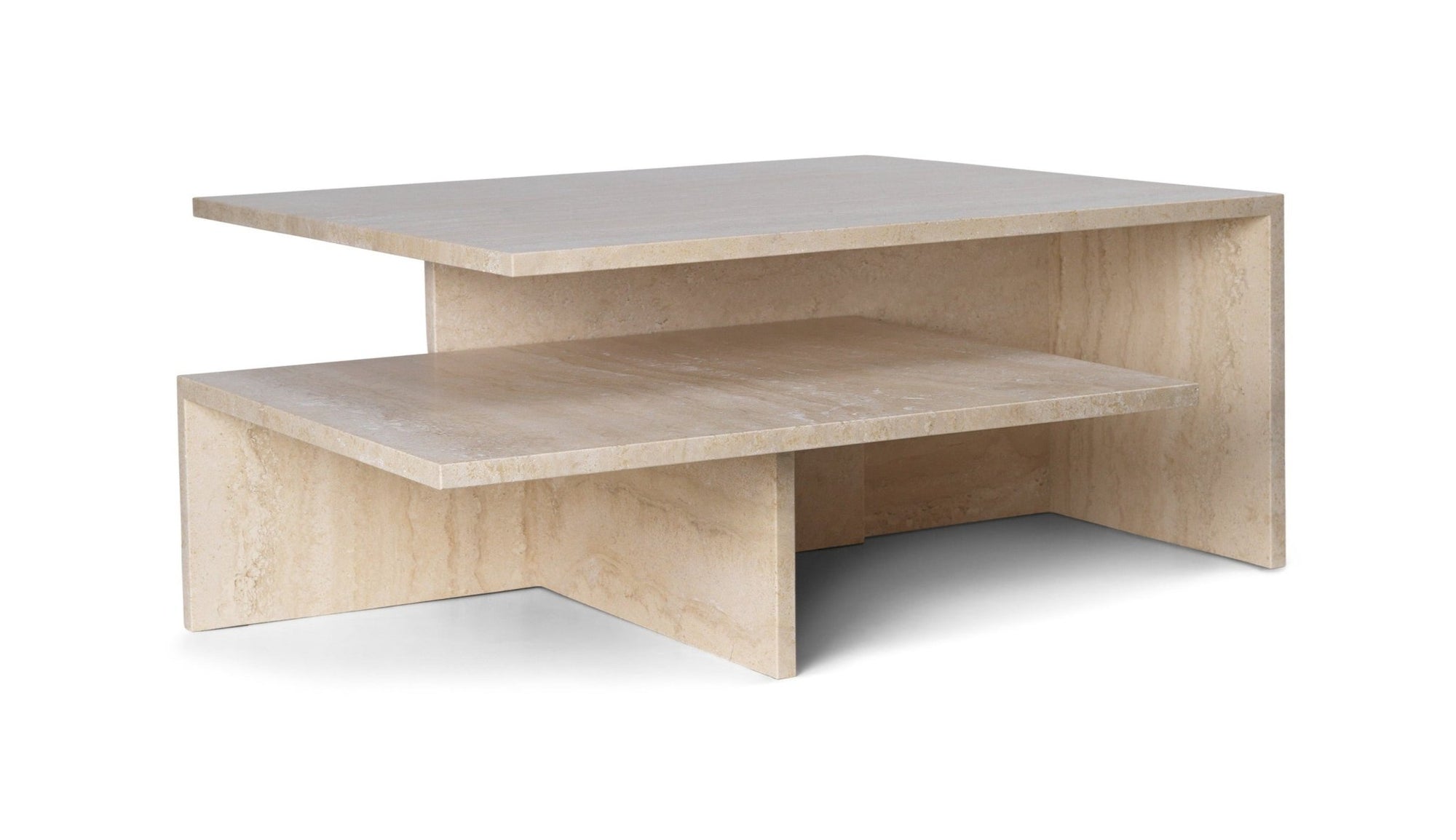 Drawing inspiration from Japanese minimalism, the Distinct Grande Duo Tables explore the creation of complex structures based on a single element. Consisting of two separate tables that form a cohesive piece in varying levels when used together, they can also be used on their own throughout your home – the choice is yours. Made entirely from travertine, the minimalist construction of the tables is contrasted by the richness of the stone’s earthy texture, highlighting their architectural expression.